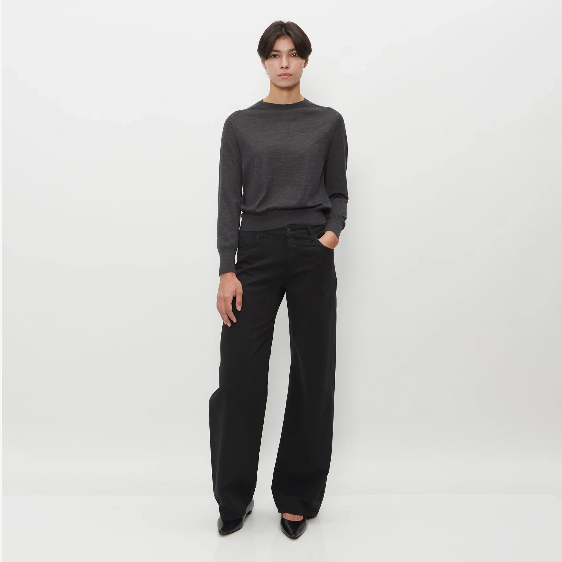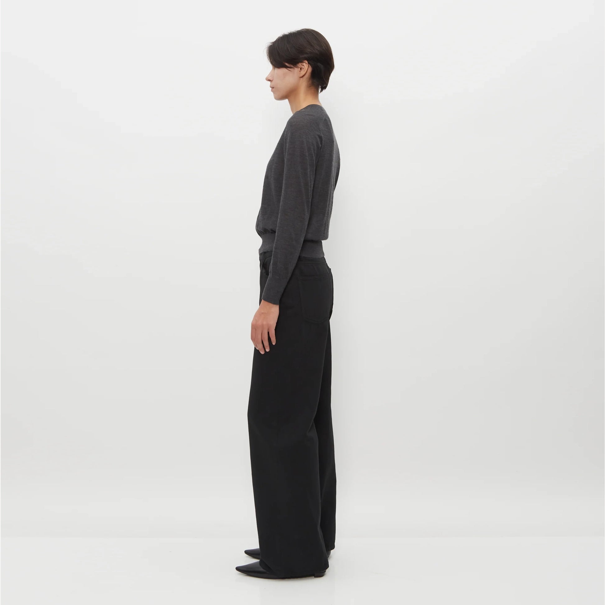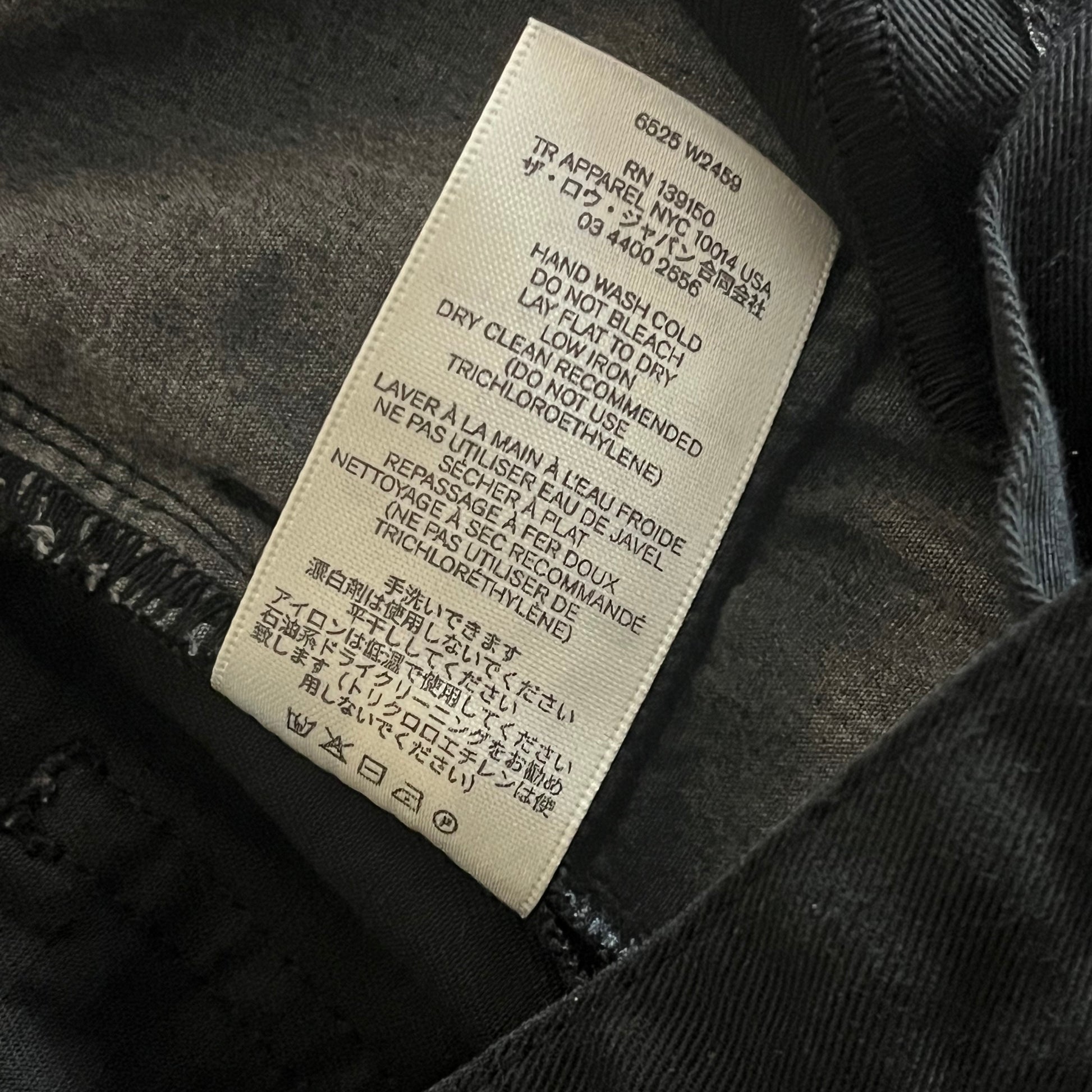 The Row "Eglitta" Jeans in Black, size 0. Designed to sit low and slouchy, works for a size 2 also. Absolutely stunning fabric (i LOVE linen/cotton denim) - but of course - why else do we love the Row so much - it's just that perfect simplicity! Waist measures 30”, rise is 10” and inside seam is 32” long. Worn a handful of times. Interested? Pics coming…70% cotton, 30% linen. In excellent condition - no signs of wear. Originally $1100CAD