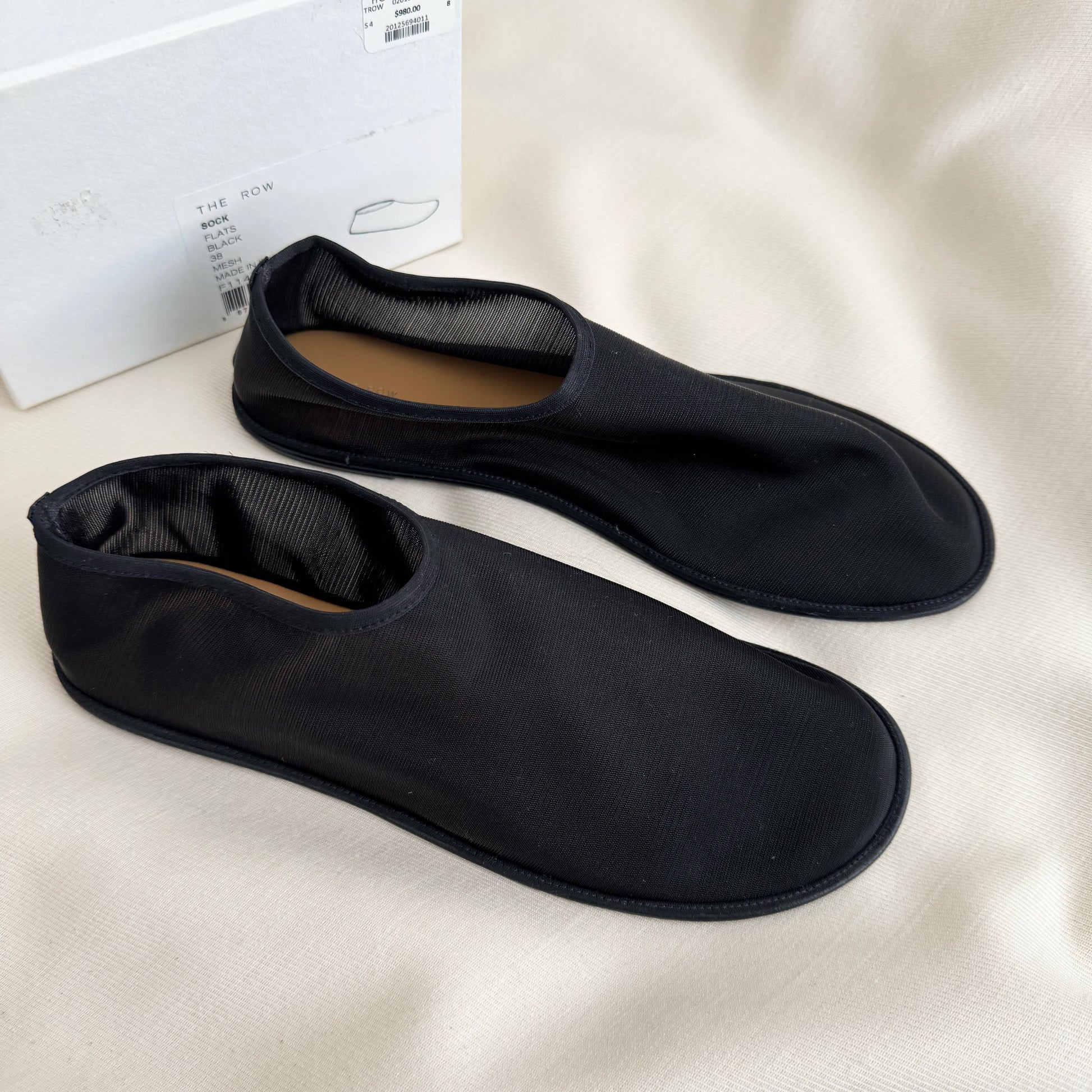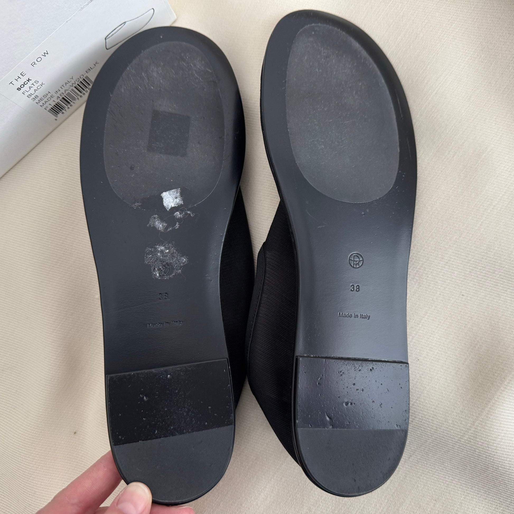 The Row Sock Flats in Black, size 38. Fits true to size. Brand new in box. A beautiful minimalist little flat - perfect for travelling (they take up NOOO SPACE AT ALL) - sort of sexy in that way that confuses men, as this brand does so well. So nice to be able to pick up the Row NOT at full price if you can help it!! Currently selling for $980CAD, and selling here for $565CAD!