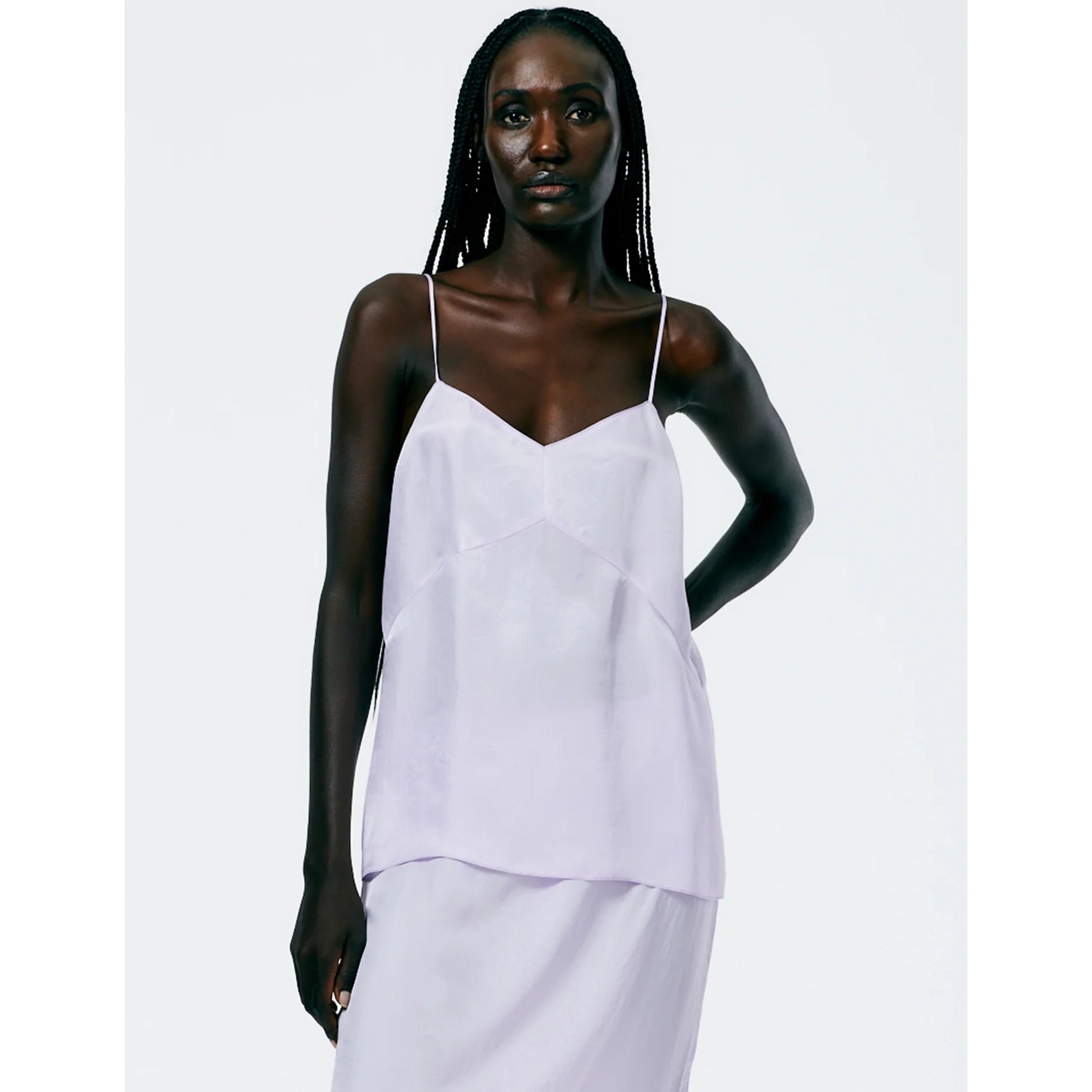 Tibi Cami Slip in Lilac, size 14. Fits true to size. Made from a drapey lightweight silky twill fabric that's perfect for the warmer temps. Dress it up or down, layer it to your hearts content, but DEFINITELY have fun with the colour!! Mix it with anything from soft neutrals to bold colours like burgundy, khaki, and browns! 21 inches armpit to armpit. Adjustable shoulder straps. 100% Acetate. In excellent condition - like new. I think this was never worn. Originally $375CAD, and selling here for $135CAD!
