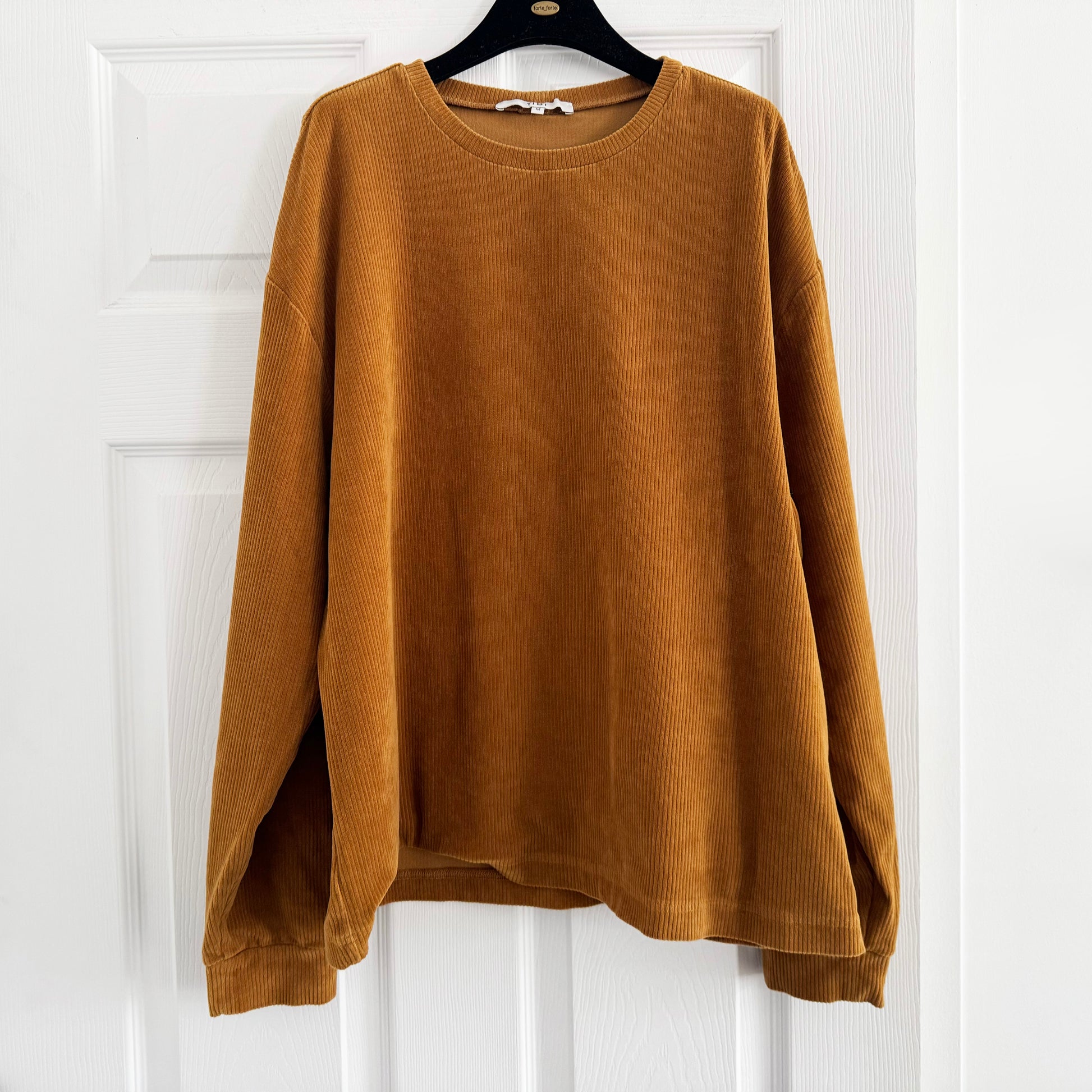 Tibi Corduroy Long Sleeve Top in Brown, size Medium. Fits true to size. I LOVE cord in the fall - and this is a really cool bridge piece between loungewear and city wear. I feel like you don't normally see corduroy done quite like this, and I'm here for it. It's not too thin, not too thick, and has some stretch for ease of movement. It's a lovely one! 23 inches armpit to armpit. 25/26 inches in length. 68% cotton, 29% polyester, 3% elastane. In very good condition. Originally around $500CAD, and selling here for $165CAD!
