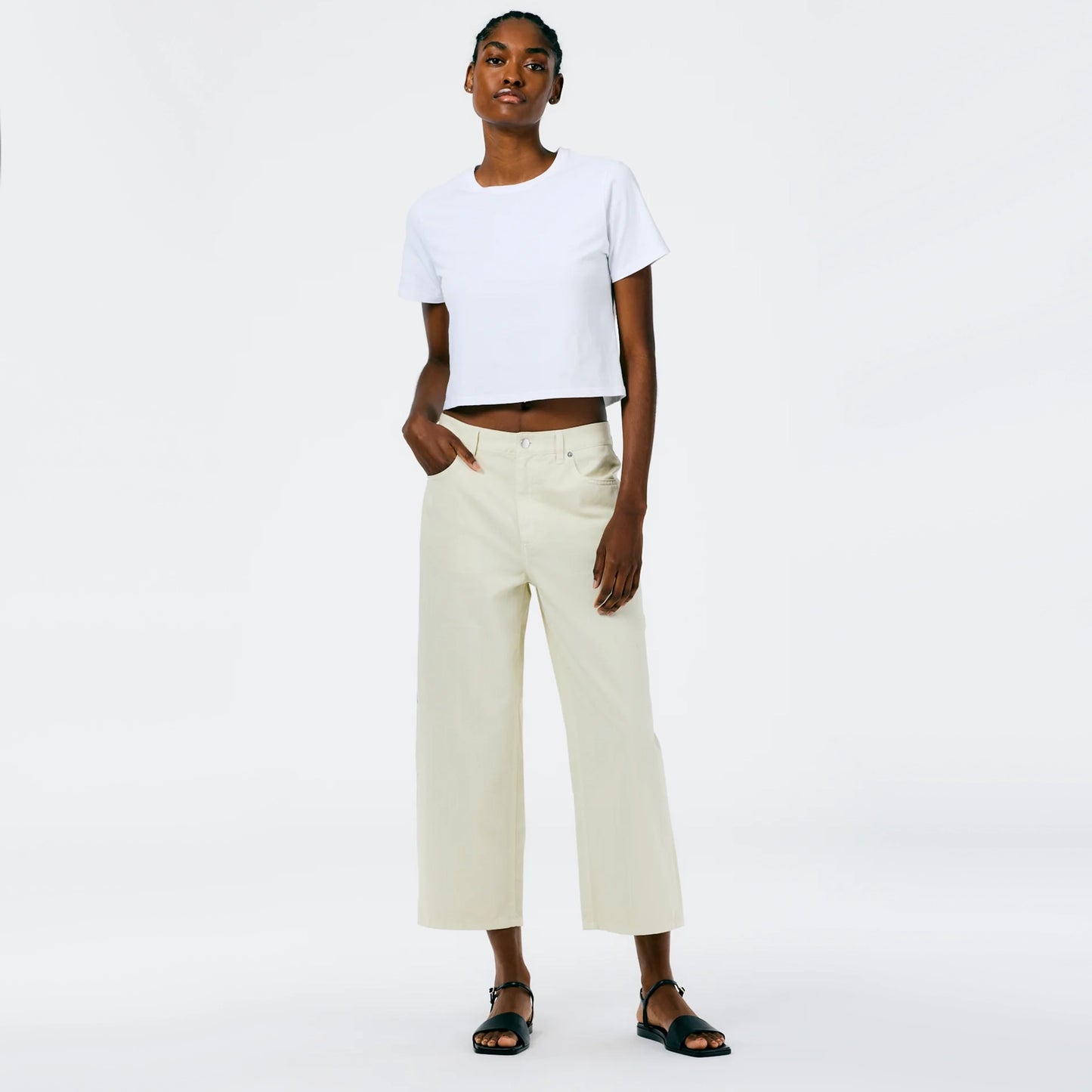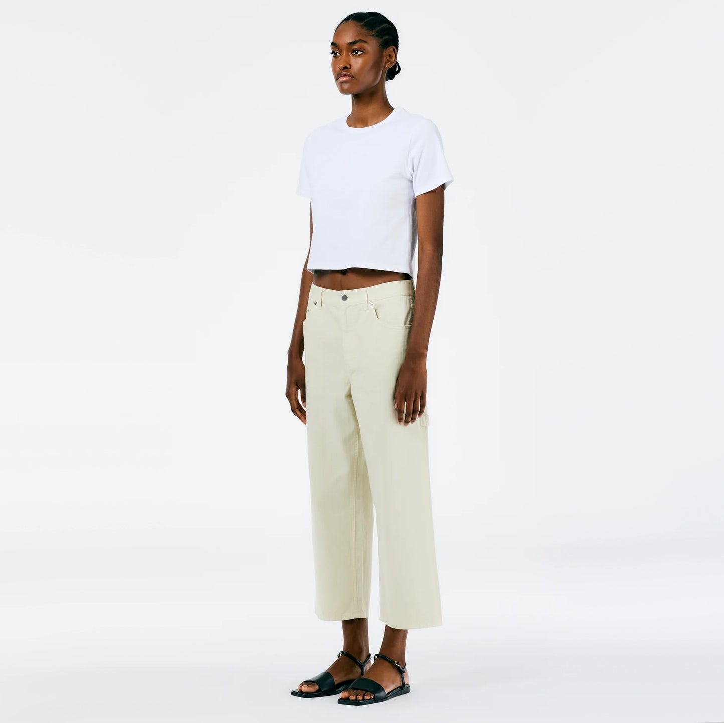 Tibi Garment Dyed Twill Cropped Slouchy Carpenter Jean in Cream, size 32