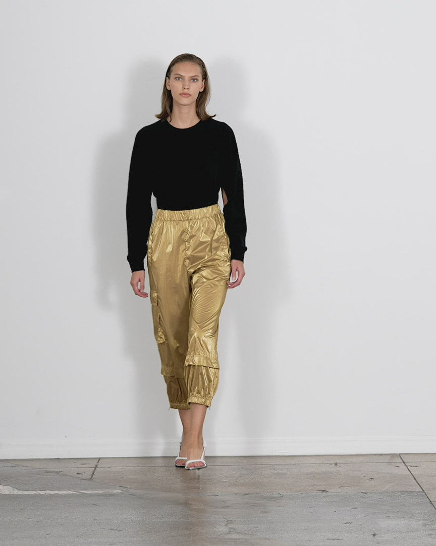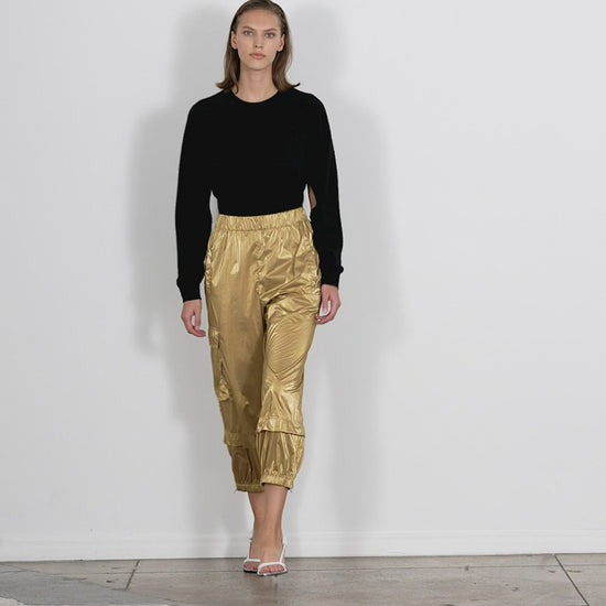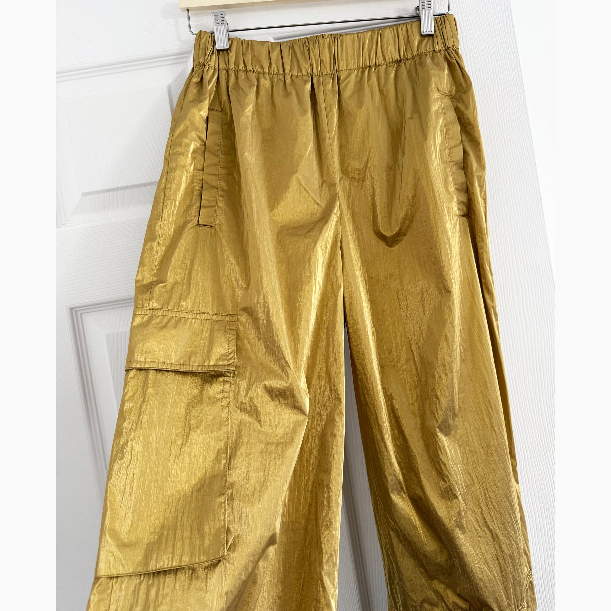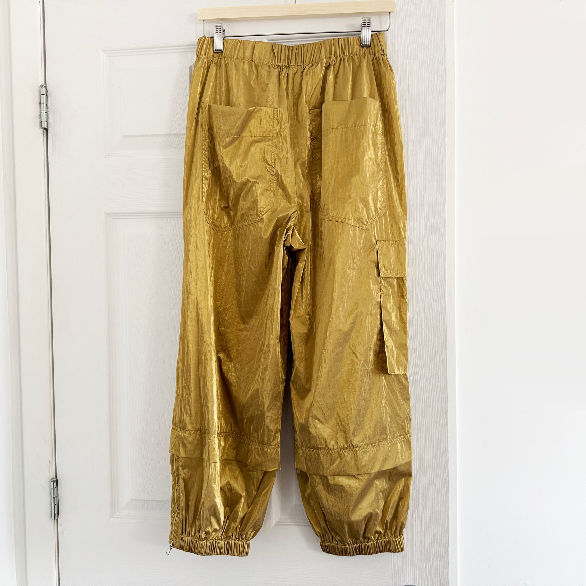 Tibi Gold Metallic Nylon Pull On Wilt Jogger, size Small