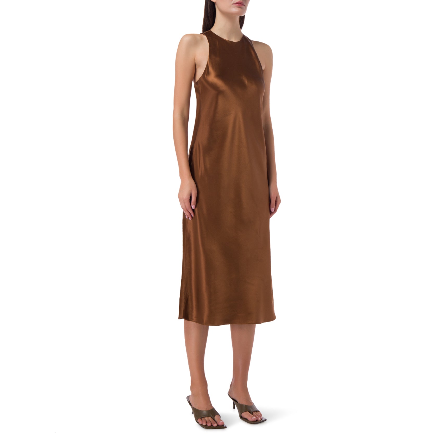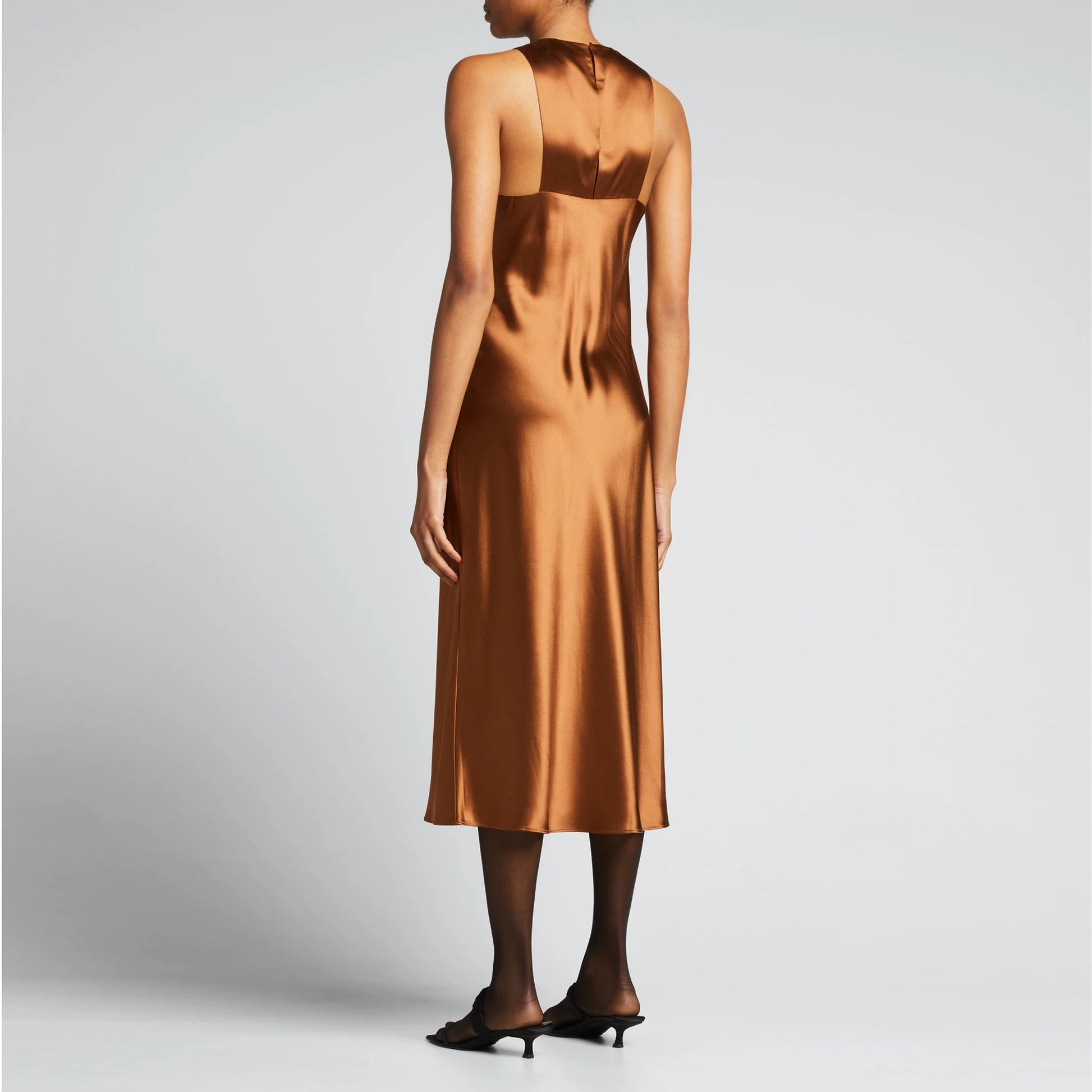 Tibi Heavy Satin Midi Bias Dress in Bronze, size 00
