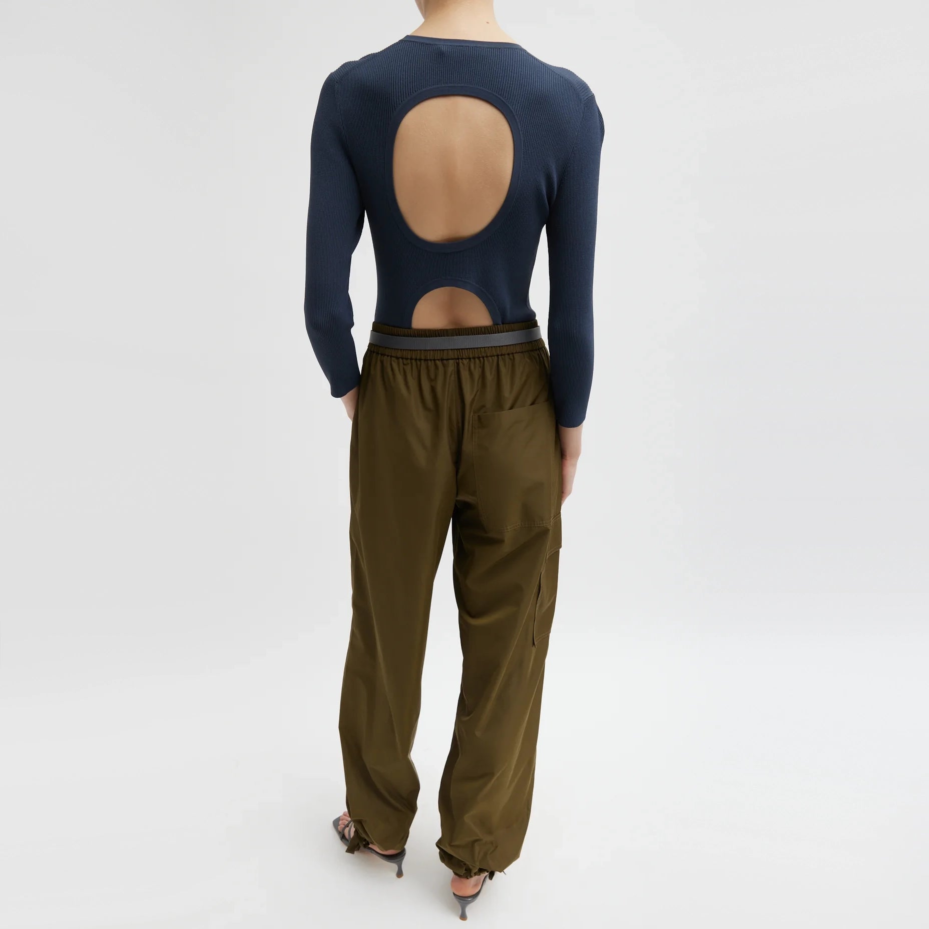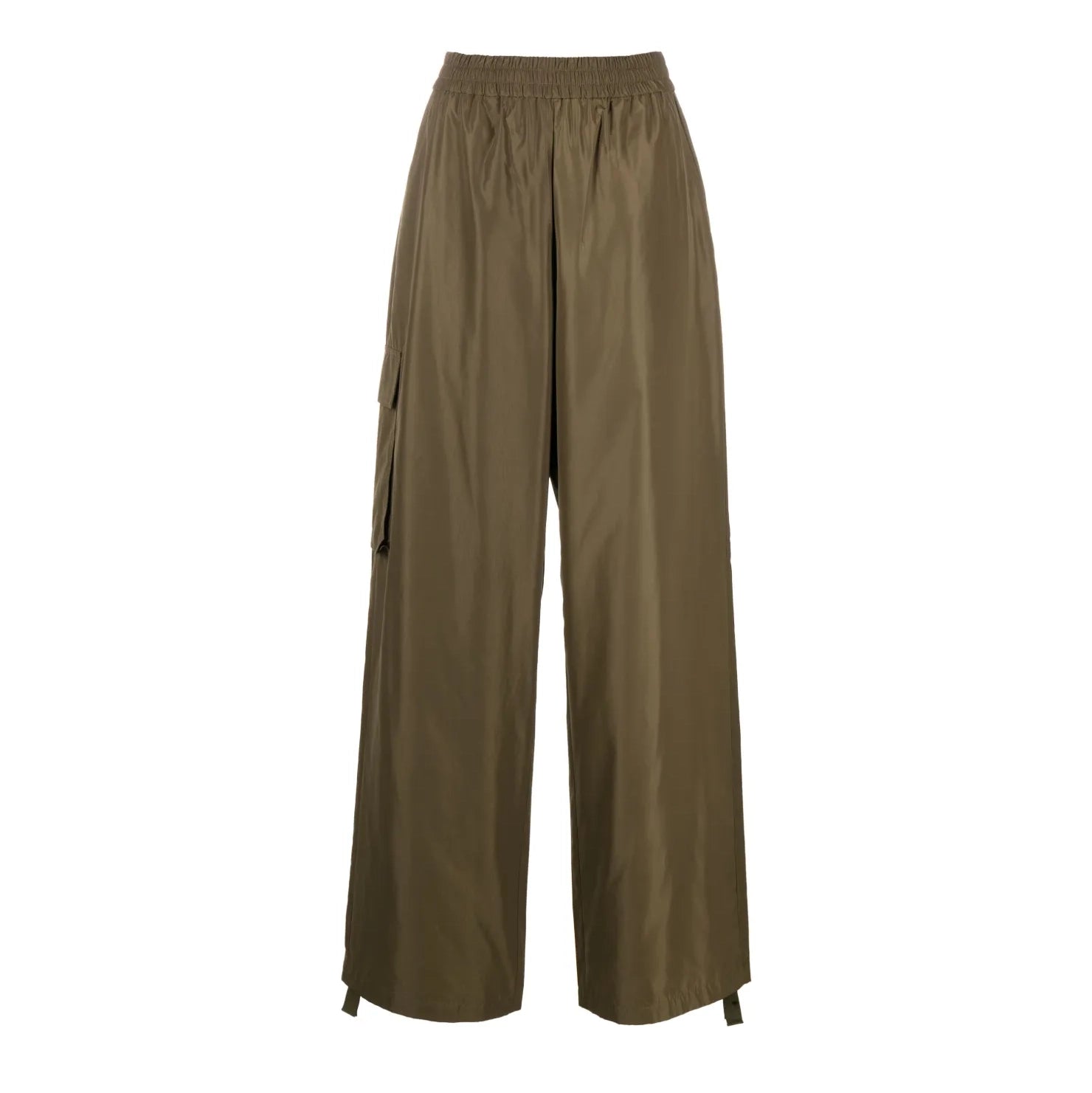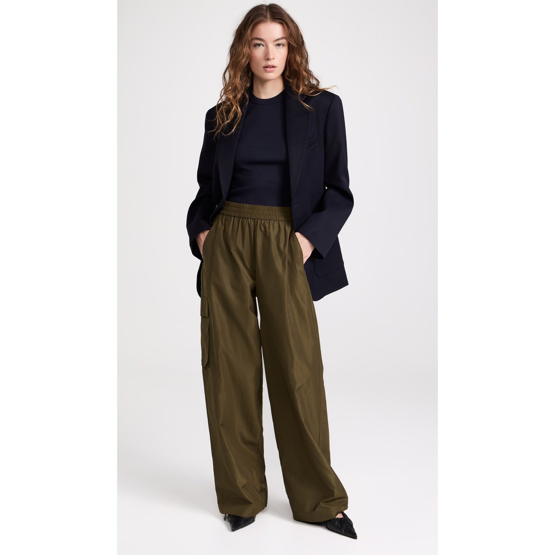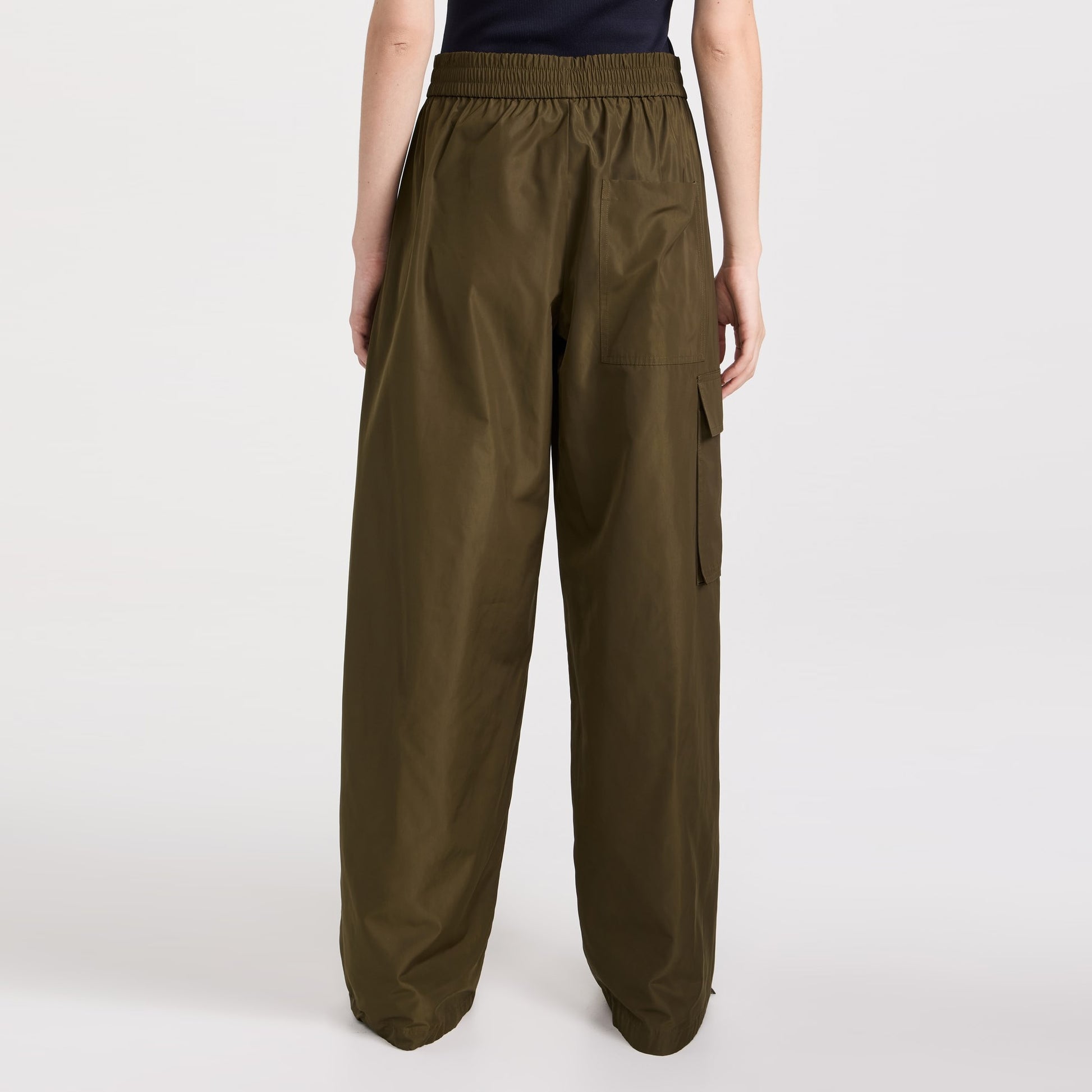 Tibi Italian Sporty Nylon Wide Leg Pull On Pants in "Wood", size XXS
