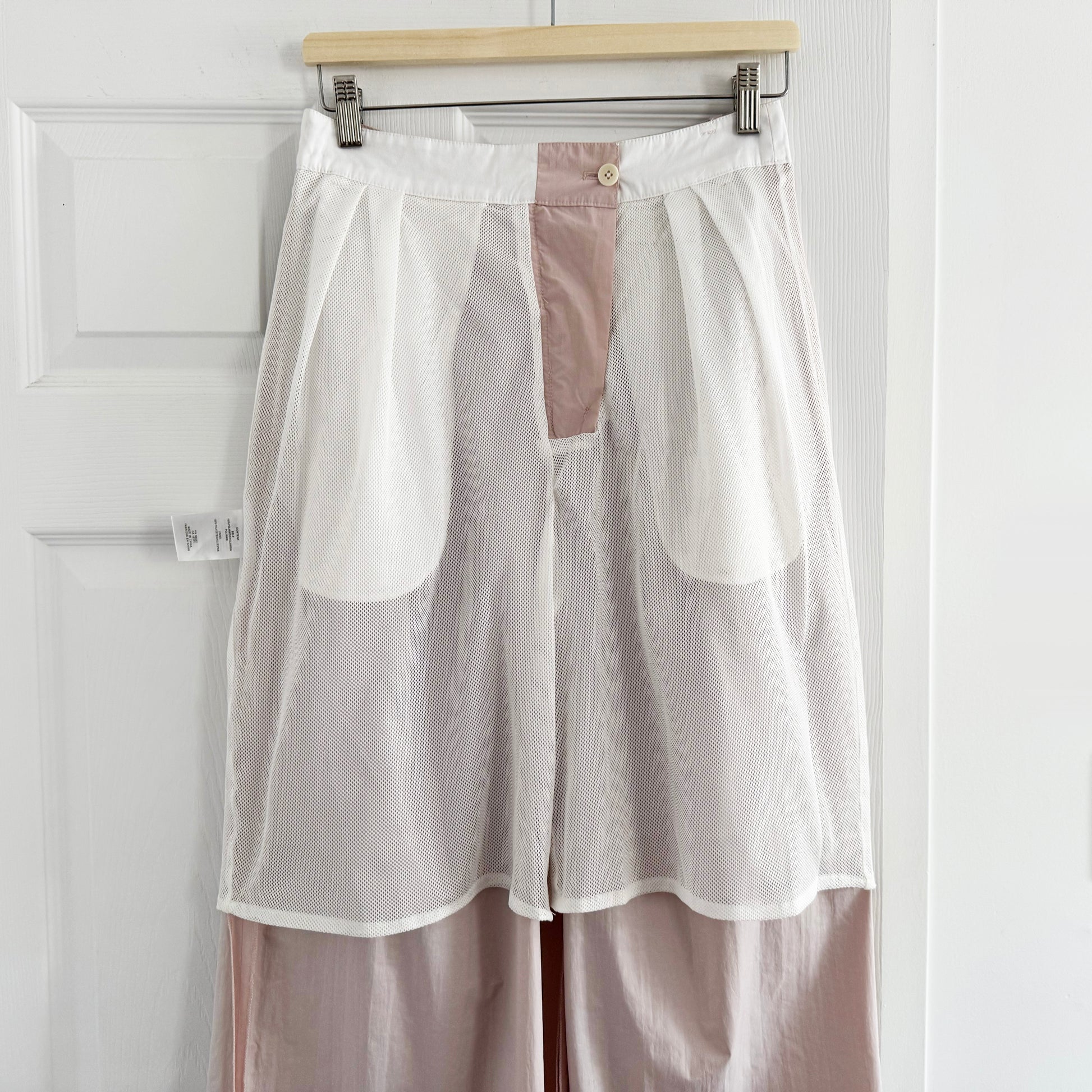 Tibi Powder Nylon Pleated Cargo Stella Pant in "Powder Pink", size 00. Fits true to size for a loose fit - could work for a 0 wanting them less baggy too. I love the sporty vibes - but not in a literal way - like cool for running errands and going shopping - but sporty inspired, like, in a way that could be so cool dressed up for dinner too. This is really what Tibi nails - pieces that cross categories in ways you WISH other clothes could. 12.5 inch rise. 14.5 inch waistband, measured flat. 29 inch inseam. 100% polyamide. In excellent condition. Originally $550CAD (plus import blah blah), and selling here for $175CAD!