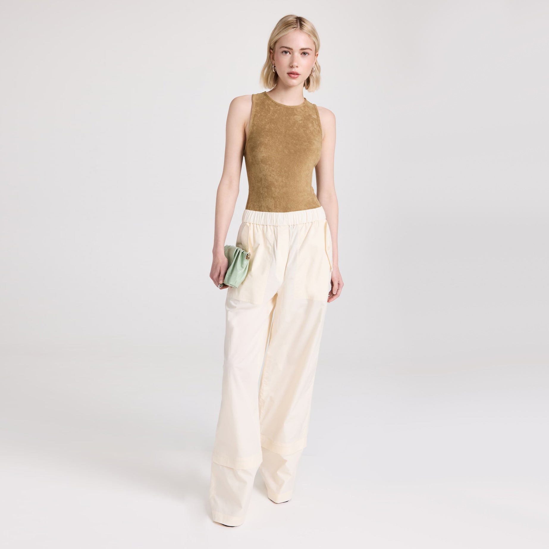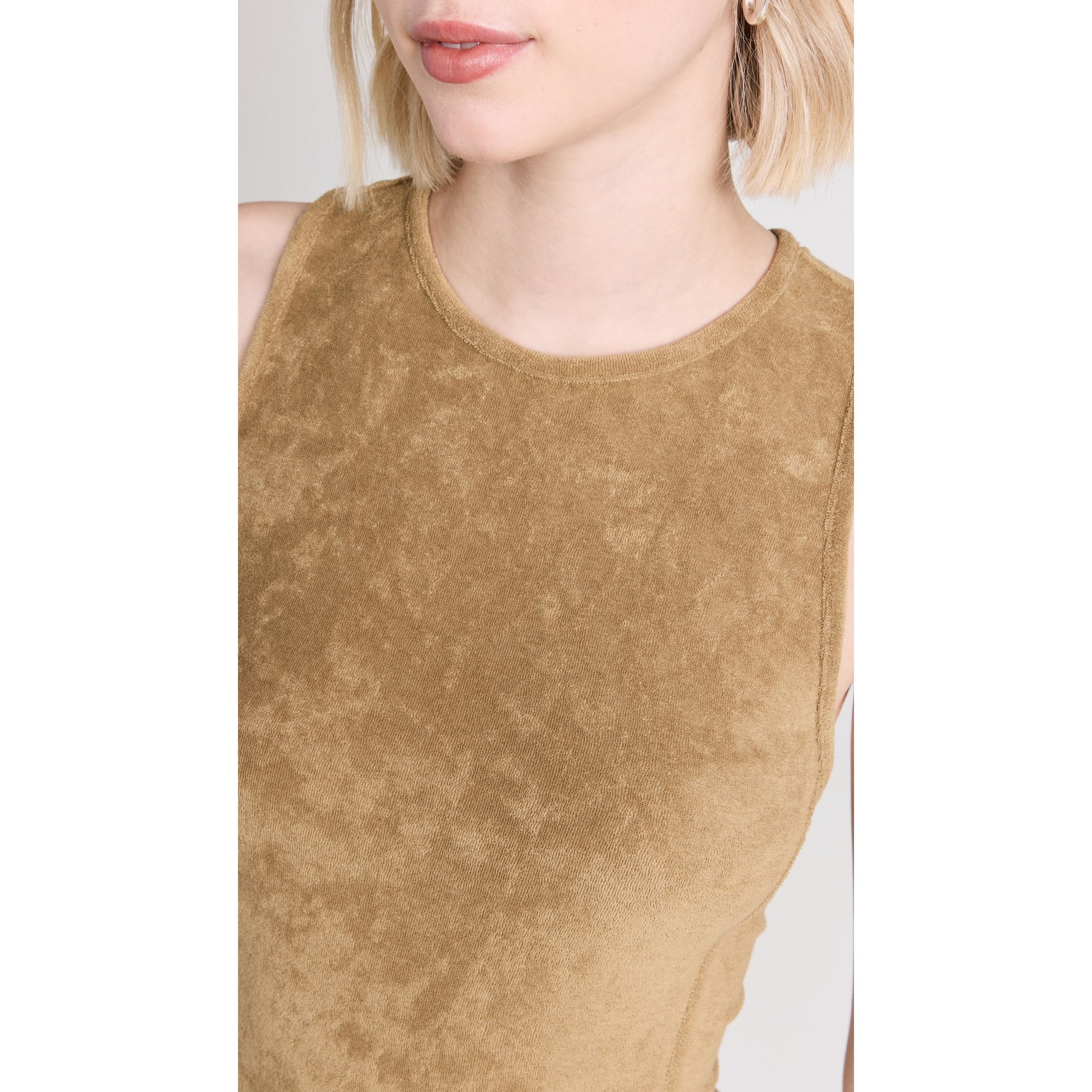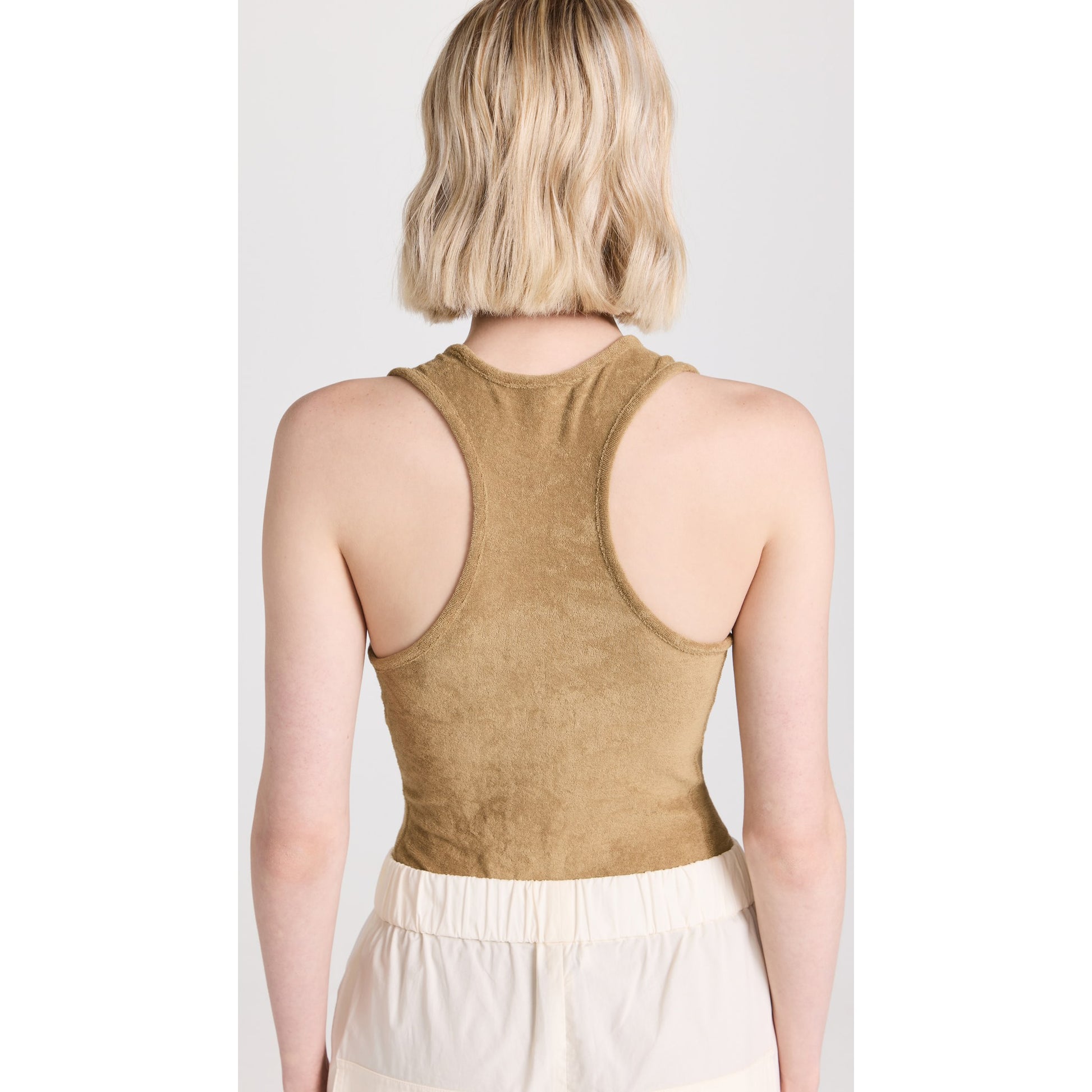 Tibi Summer Terry Crewneck Racerback Bodysuit in "Cumin", size Medium