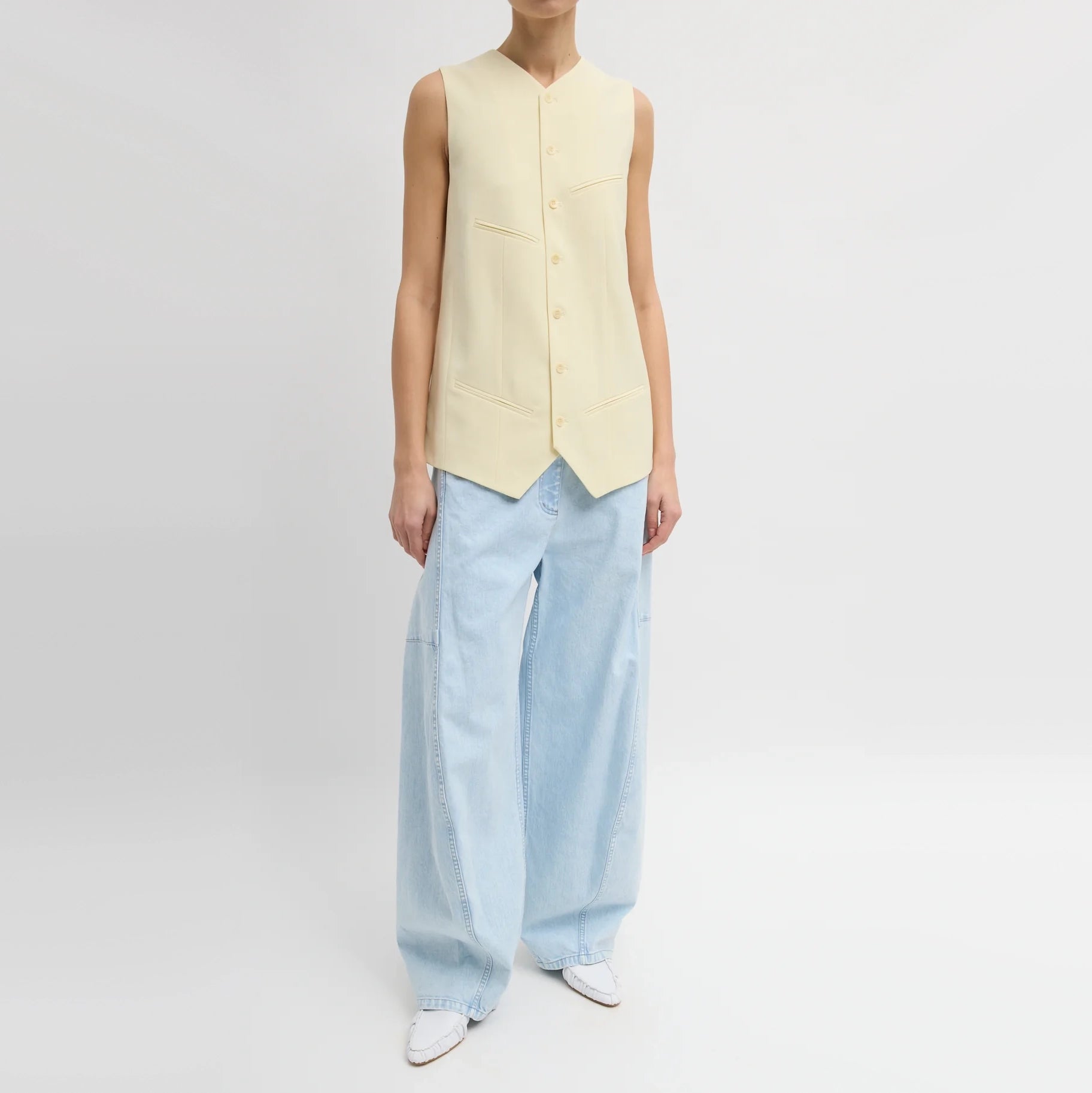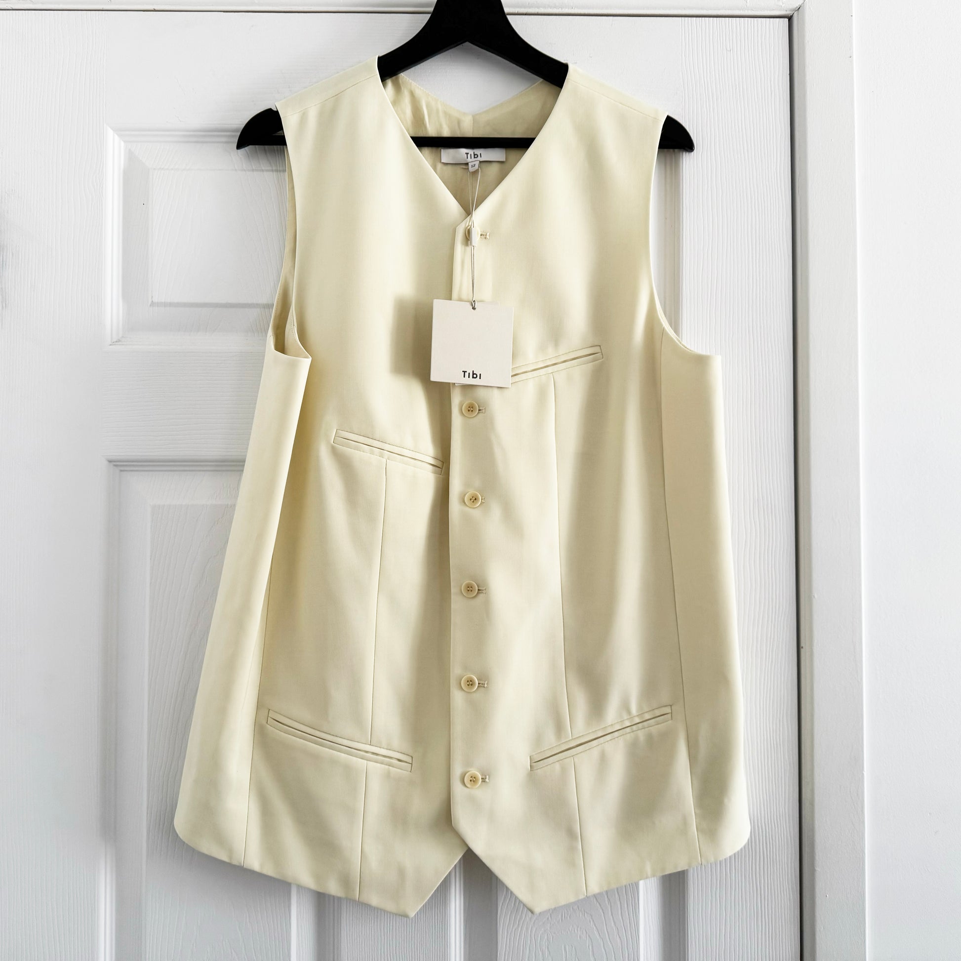 Tibi Tropical Wool Easy Vest in Ivory (Pale Yellow), size 12