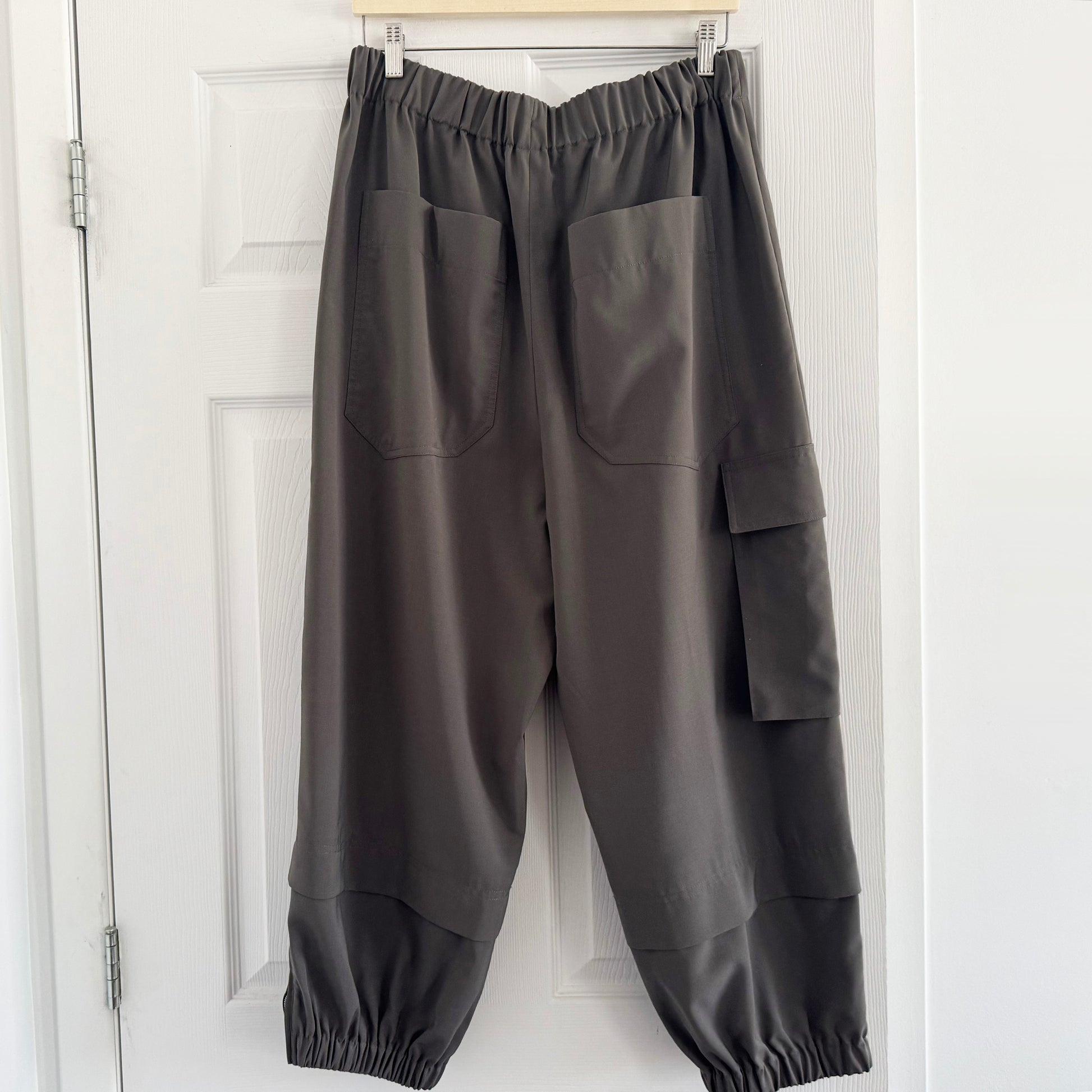 Tibi Tropical Wool Pull On "Wilt" Jogger in "Dark Stone", size Large