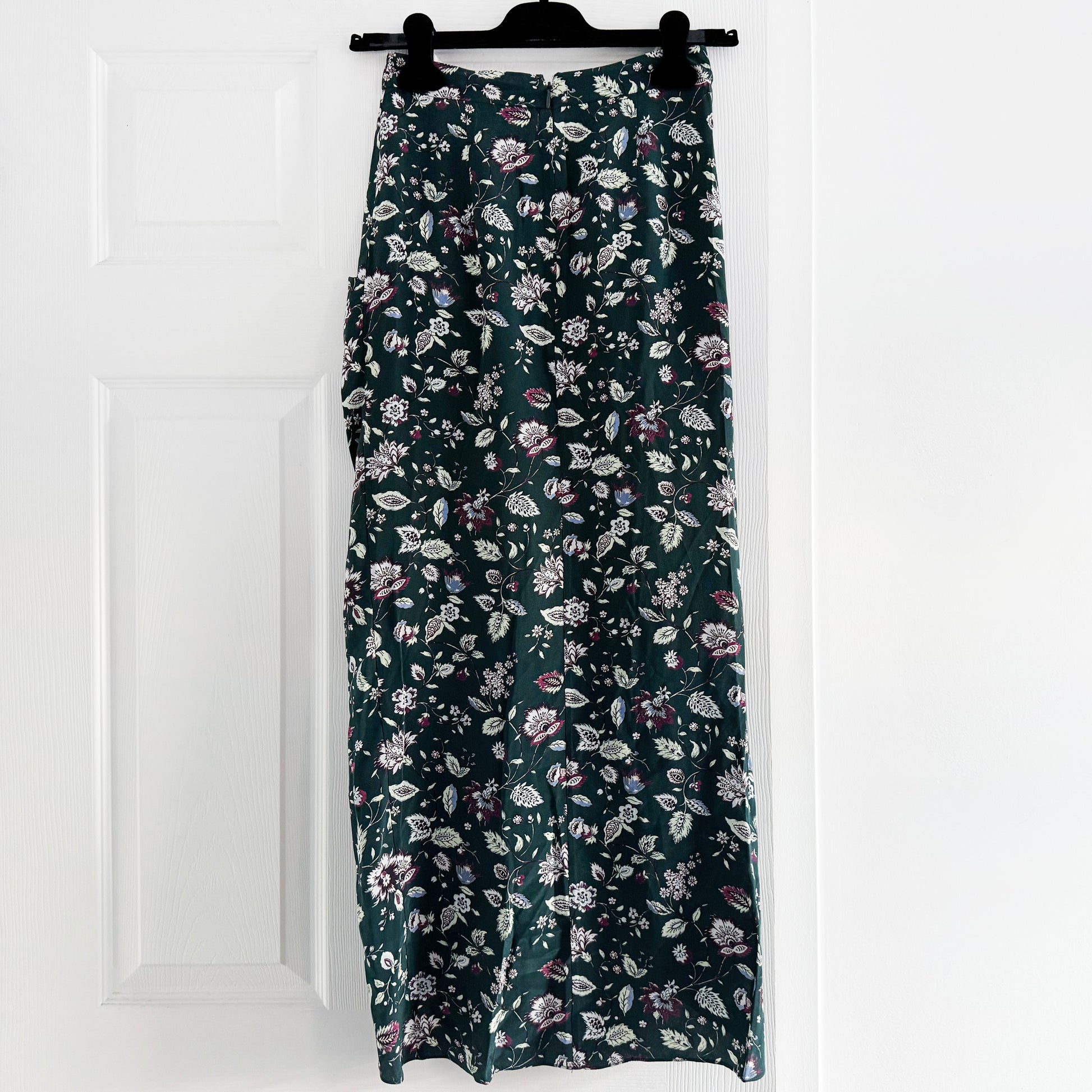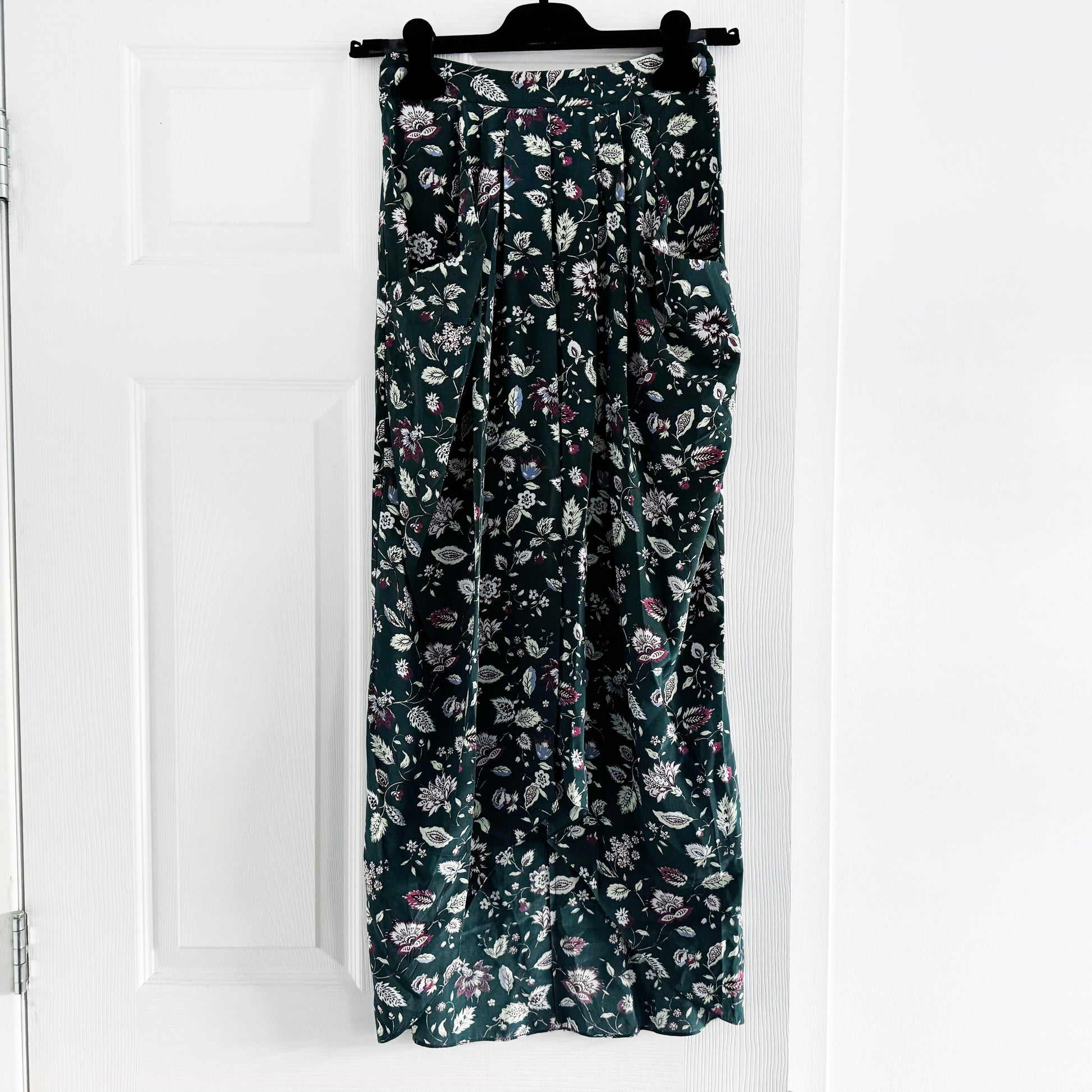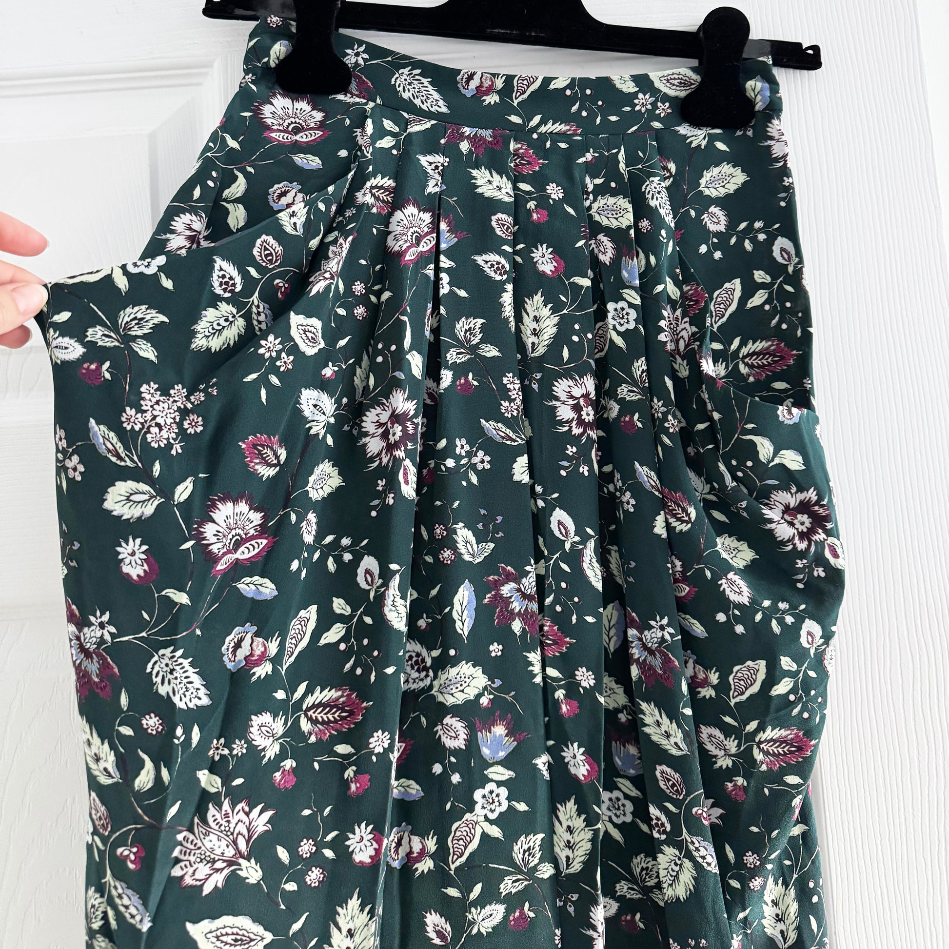 Isabel Marant Green Floral print "Ginkinali" Skirt, Size 34. Fits like a size XXS, like a 23/24 in jeans. Brand new with tags! A stunning dark floral skirt that works well with anything from boots to sandals - so pretty for wear in any season! Gotta love versatility like that. Chic enough to wear to a wedding, but comfortable enough to wear every day. Side zip closure. 25 inches actual waistband. 27 inches in length at the front, and 36 inches in length at the back. 100% Silk. Originally $1095CAD, and selling here for $265CAD!