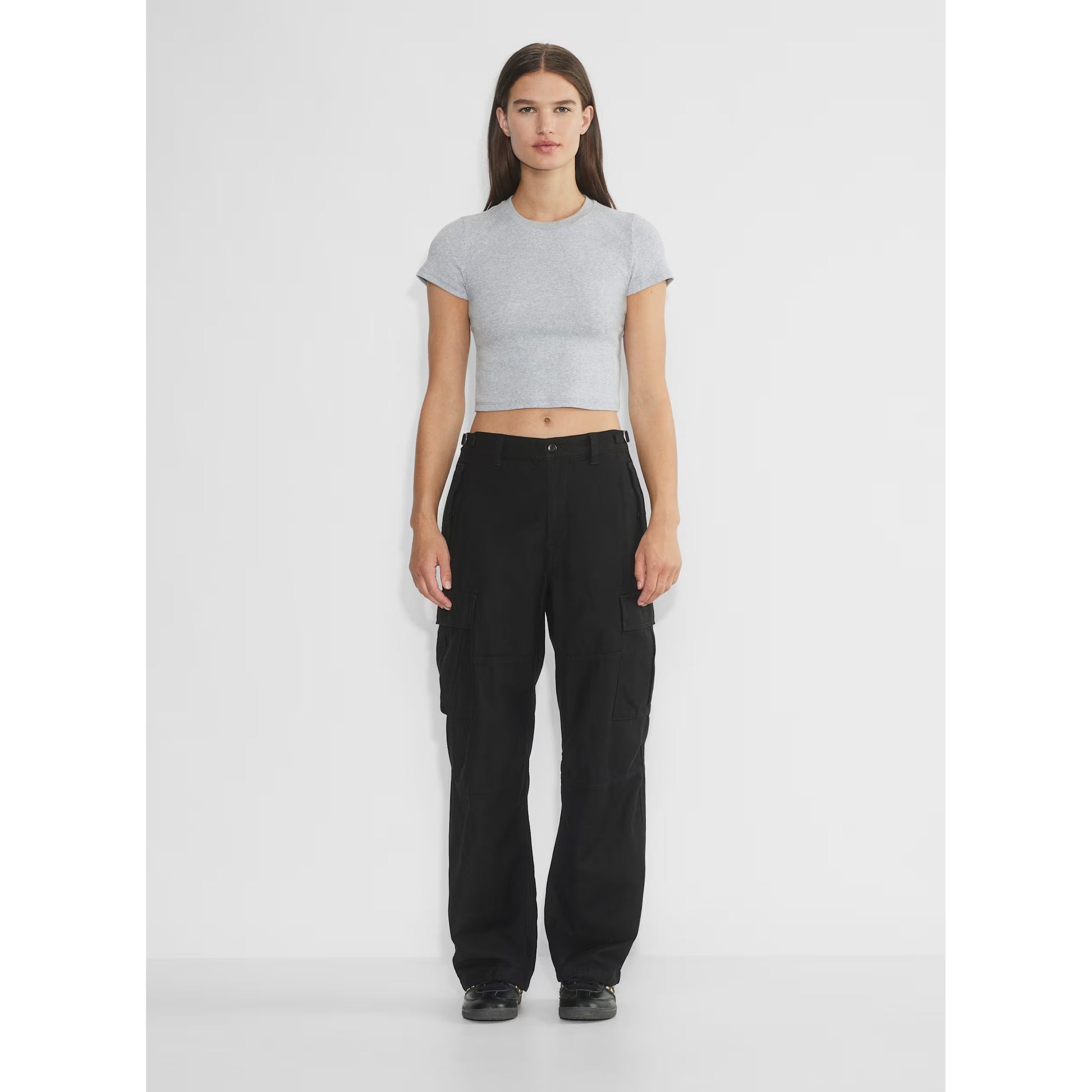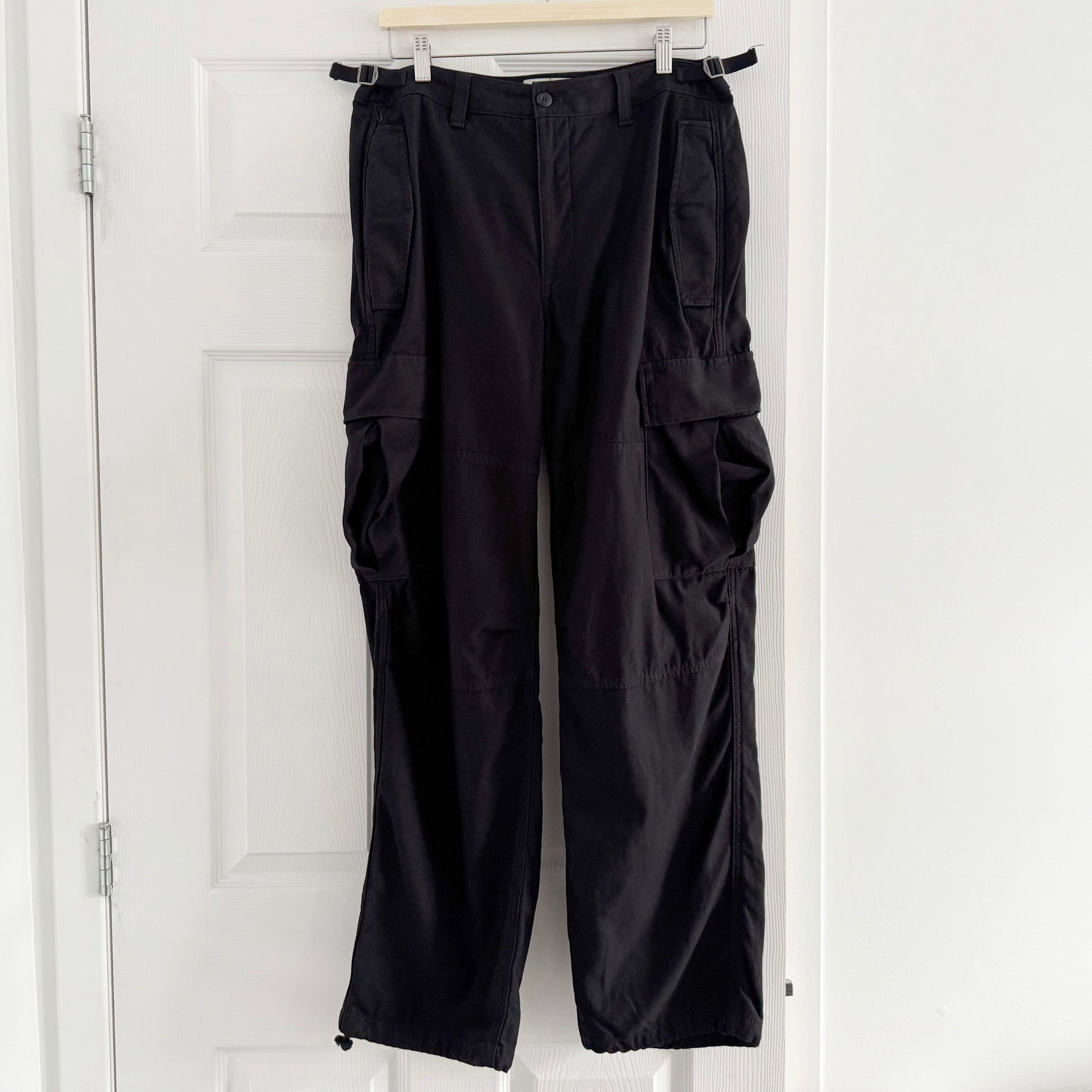TNA Cargo Pants in Black, size 10. Fits true to size, for Aritzia sizing, if you want them fitted. If you want them slouchier, they could work for a 6/8 too. A classic military issue inspired cargo pant in a good medium weight cotton twill fabric. Zip fly. 17 inch waistband, measured flat. 11 inch rise. 30.5 inch inseam. 100% cotton. Worn once or twice and in great condition. Originally $128CAD, and selling here for $45CAD!