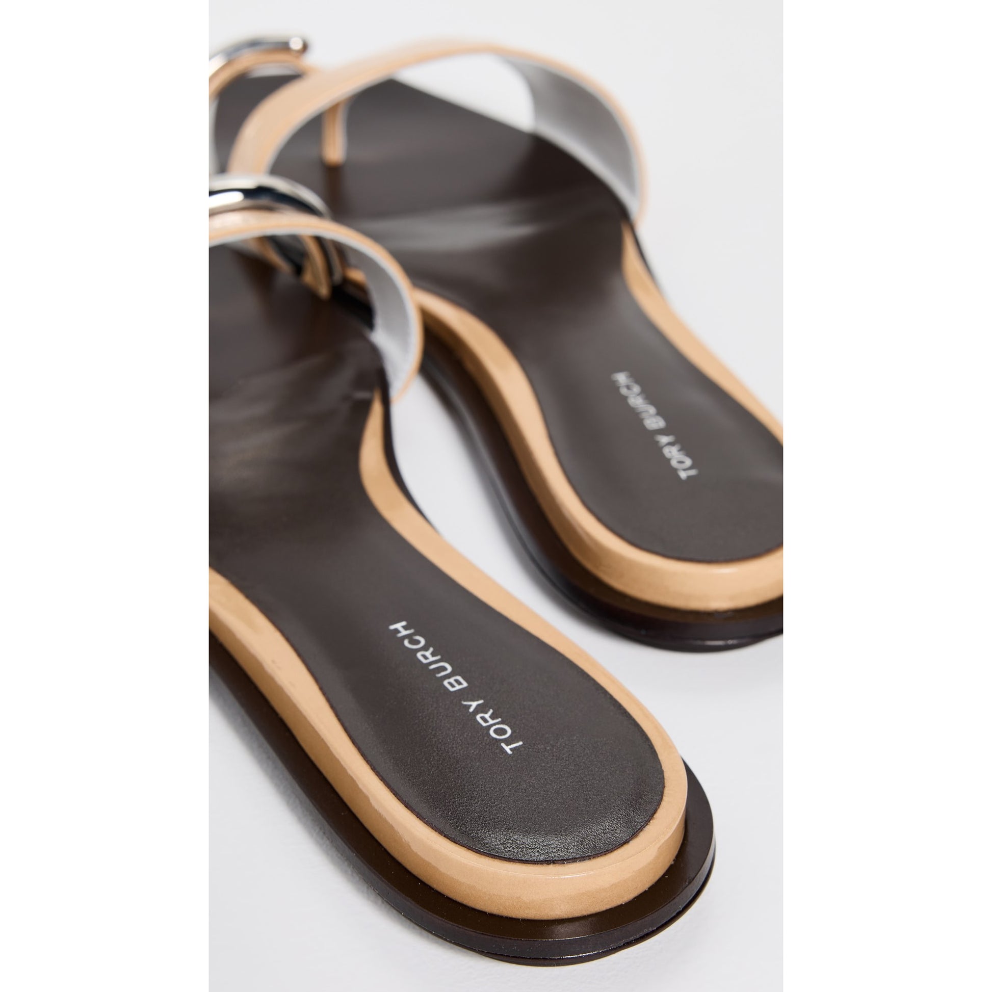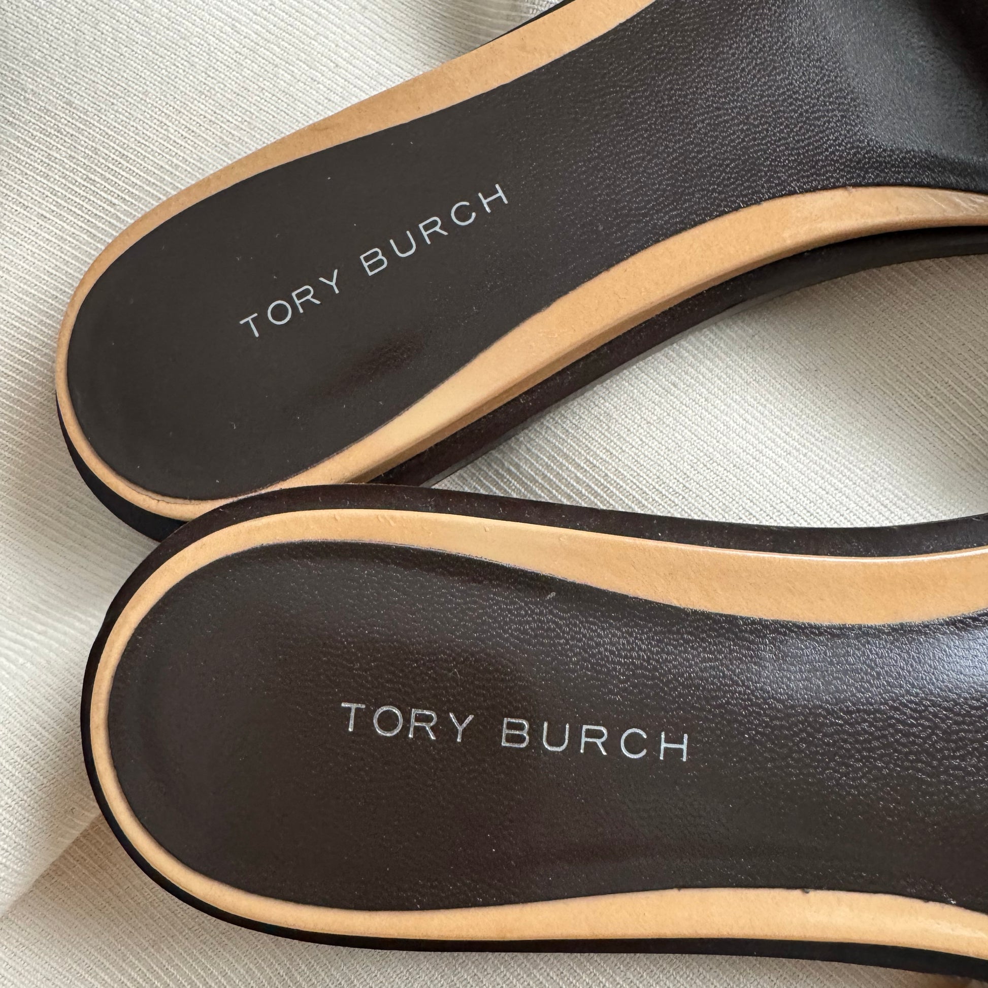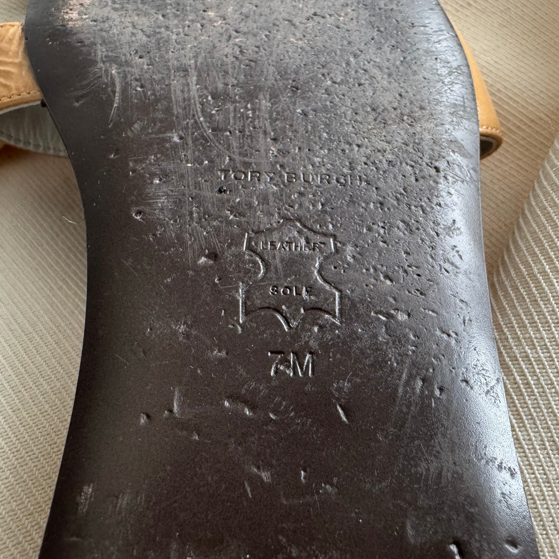Tory Burch "Pierced" Slides in "Cantucci/Silver", size 7
