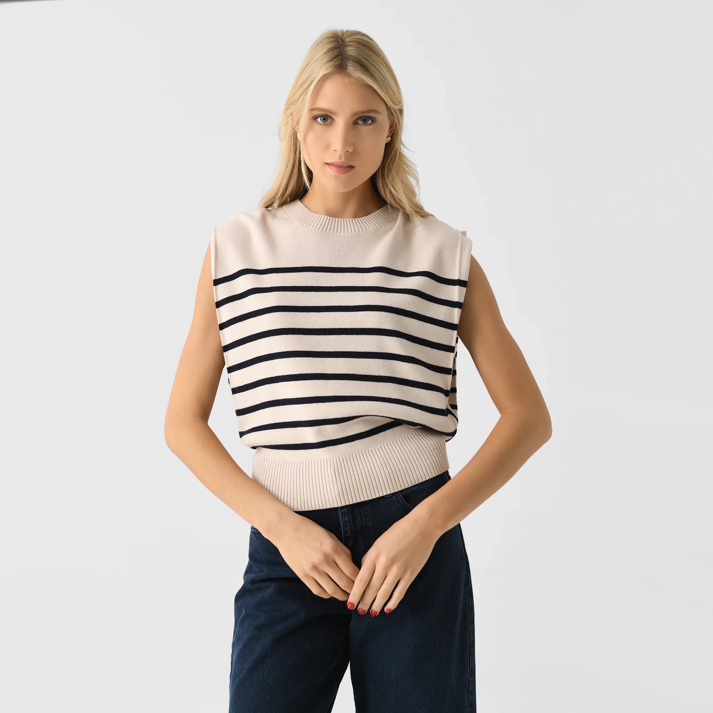Vanessa Bruno "Cassandra" Knit Top in Navy/Ecru Stripe, size Small