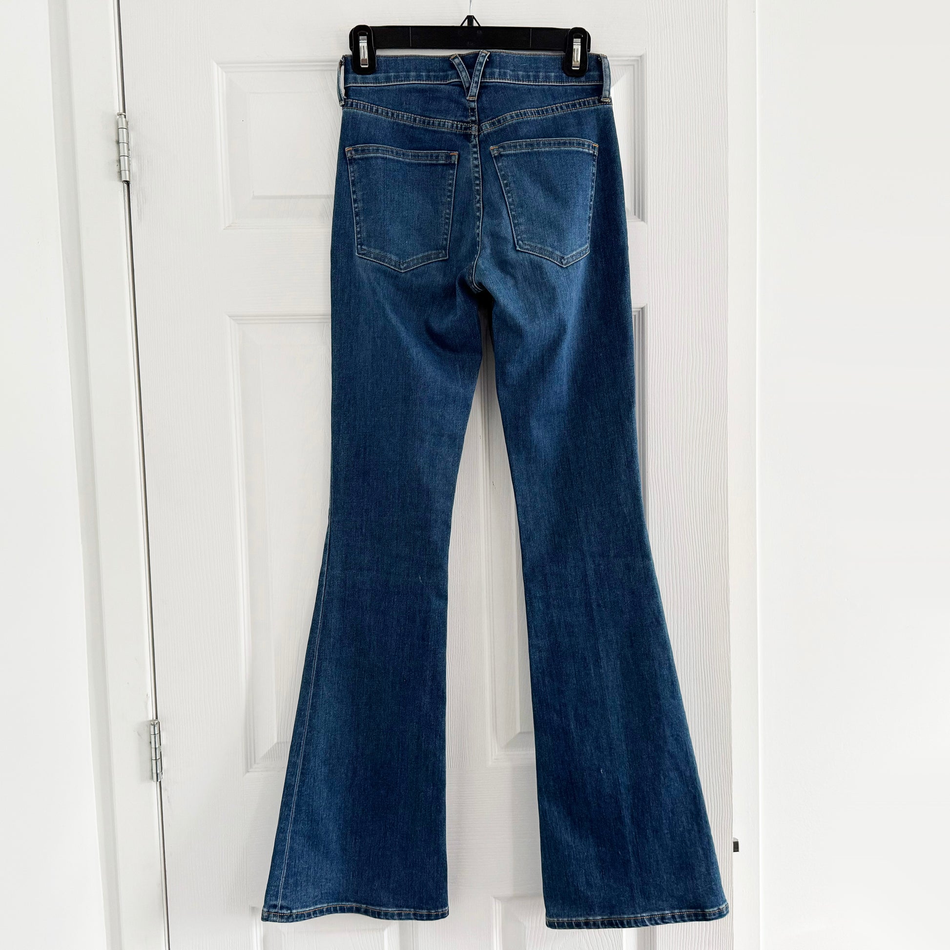 Veronica Beard "Beverly" High Rise Skinny Flare Jeans in "Bright Blue", size 25. Fits true to size, and GREAT if you're tall! Done in a comfy stretch denim, these flares are great styled so many ways - with a boot, with heels, with anything (depending on where they hit you and all that of course). 13.5 inch waistband, measured flat. It's stretchy, not stiff. 10 inch rise. 34 inch inseam. 92% cotton, 6% elastomultiester, 2% polyurethane. In excellent condition. Currently selling for over $470CAD, and selling here for $175CAD!
