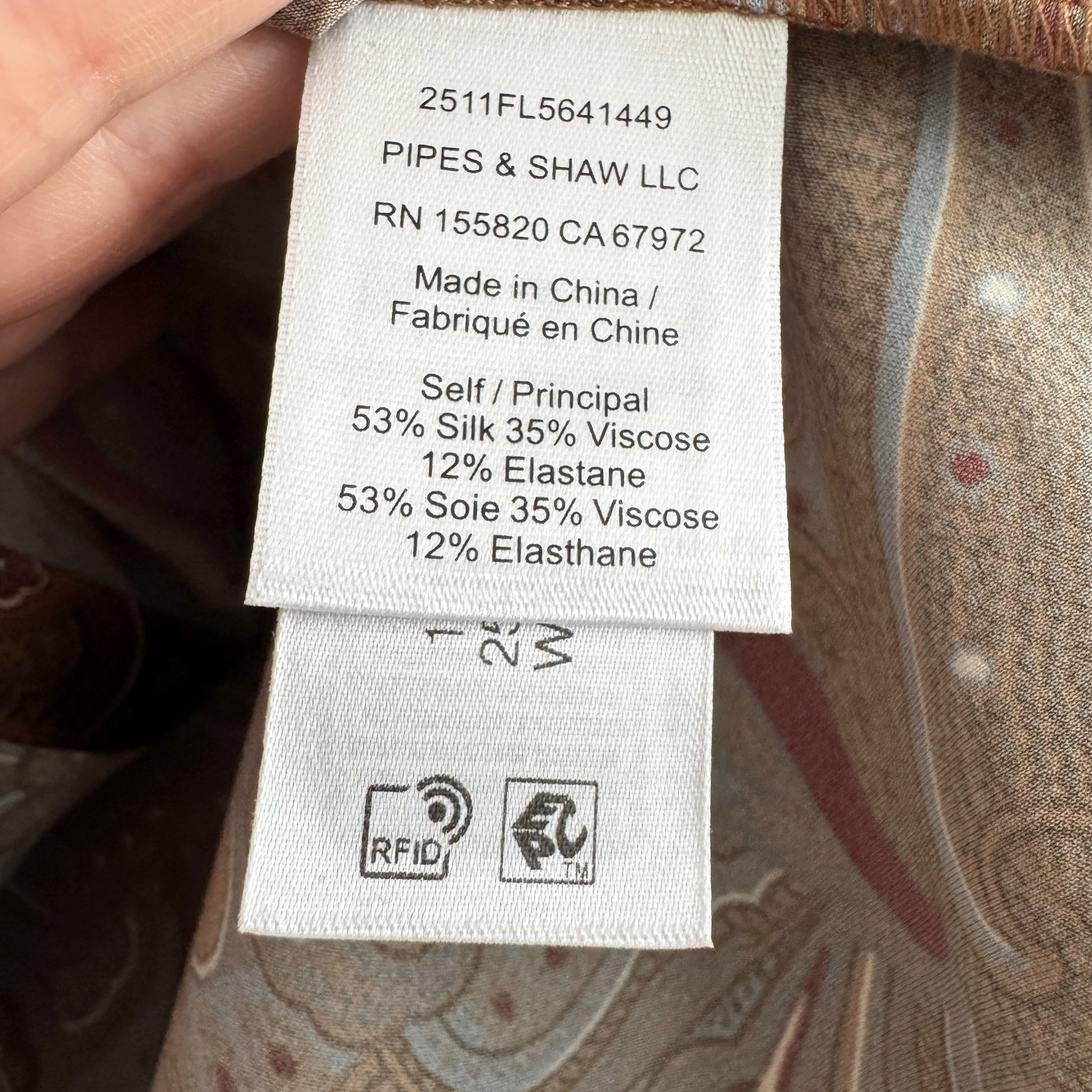 - 53% Silk, 35% Viscose, 12% Elastane