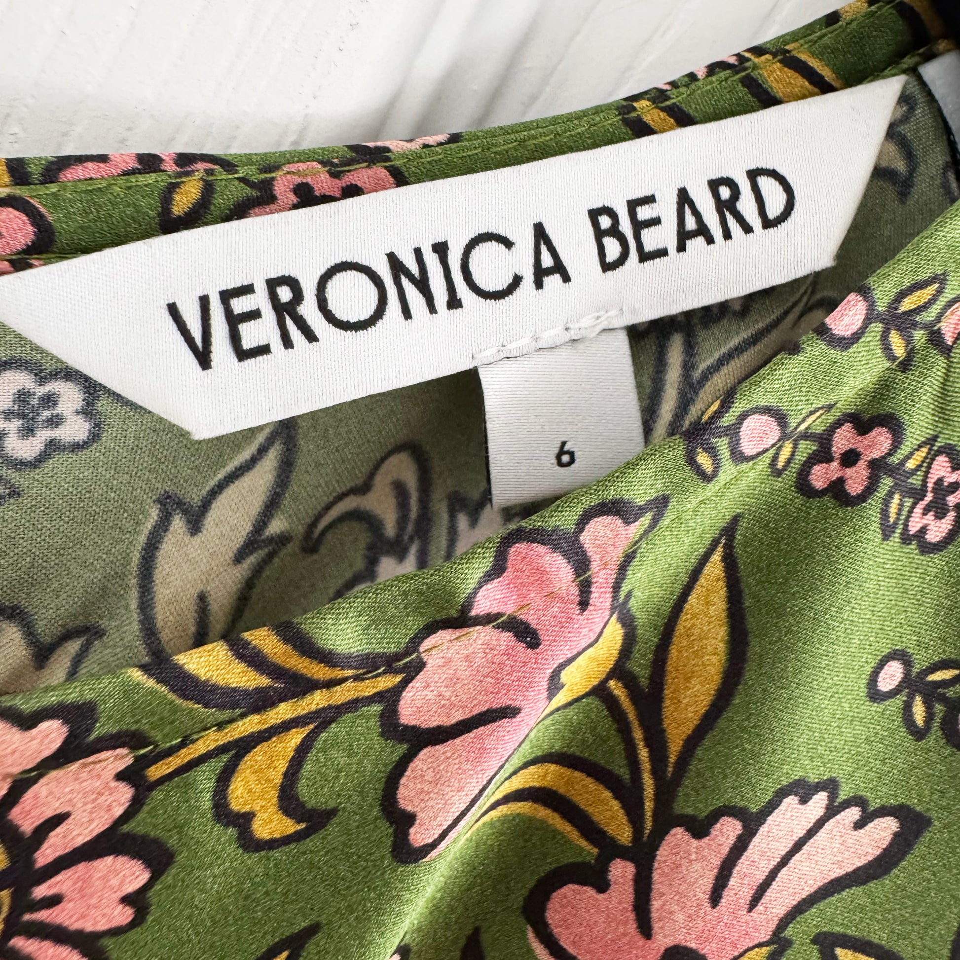 Veronica Beard "Gemma" Floral Silk Long Sleeve Dress in Green, size 6