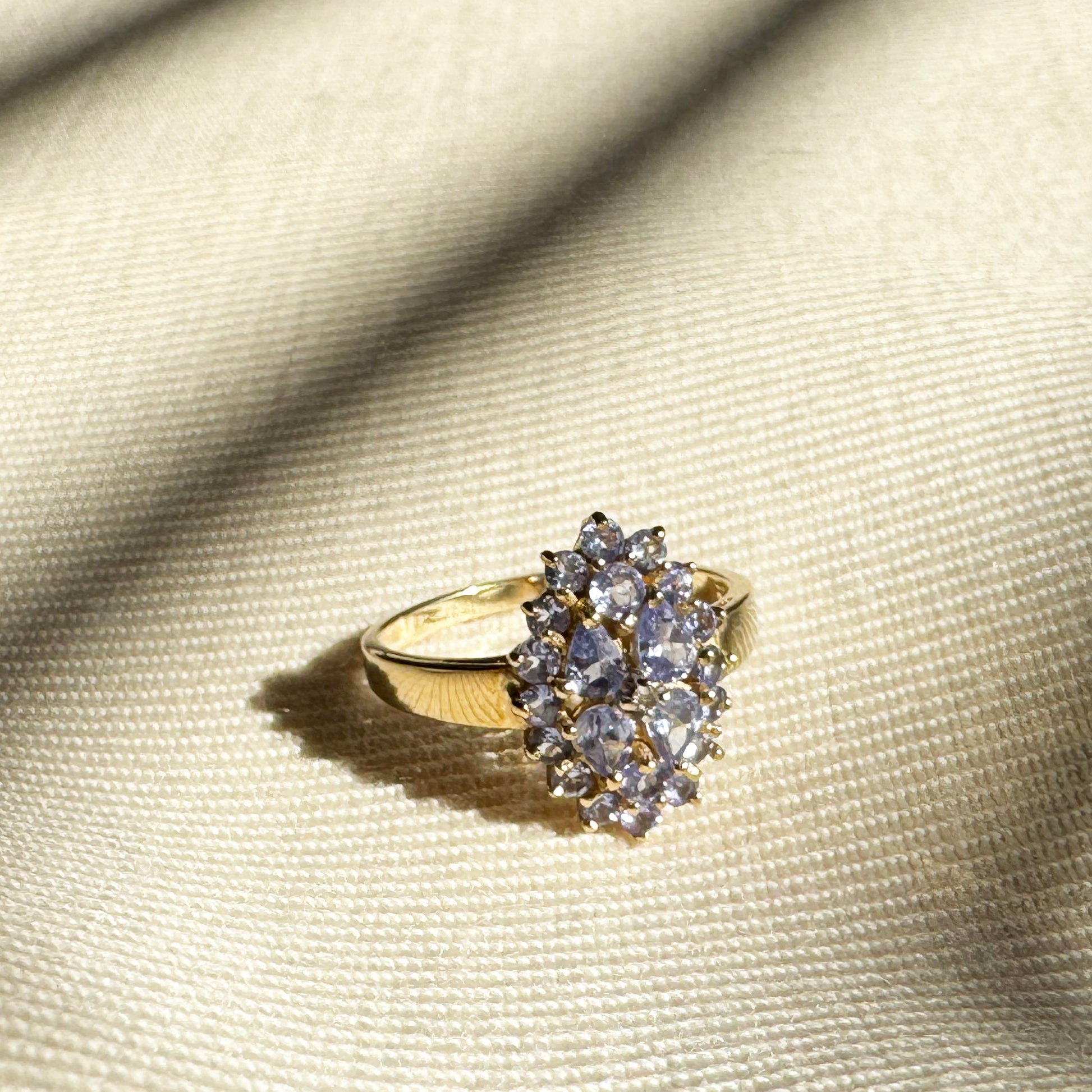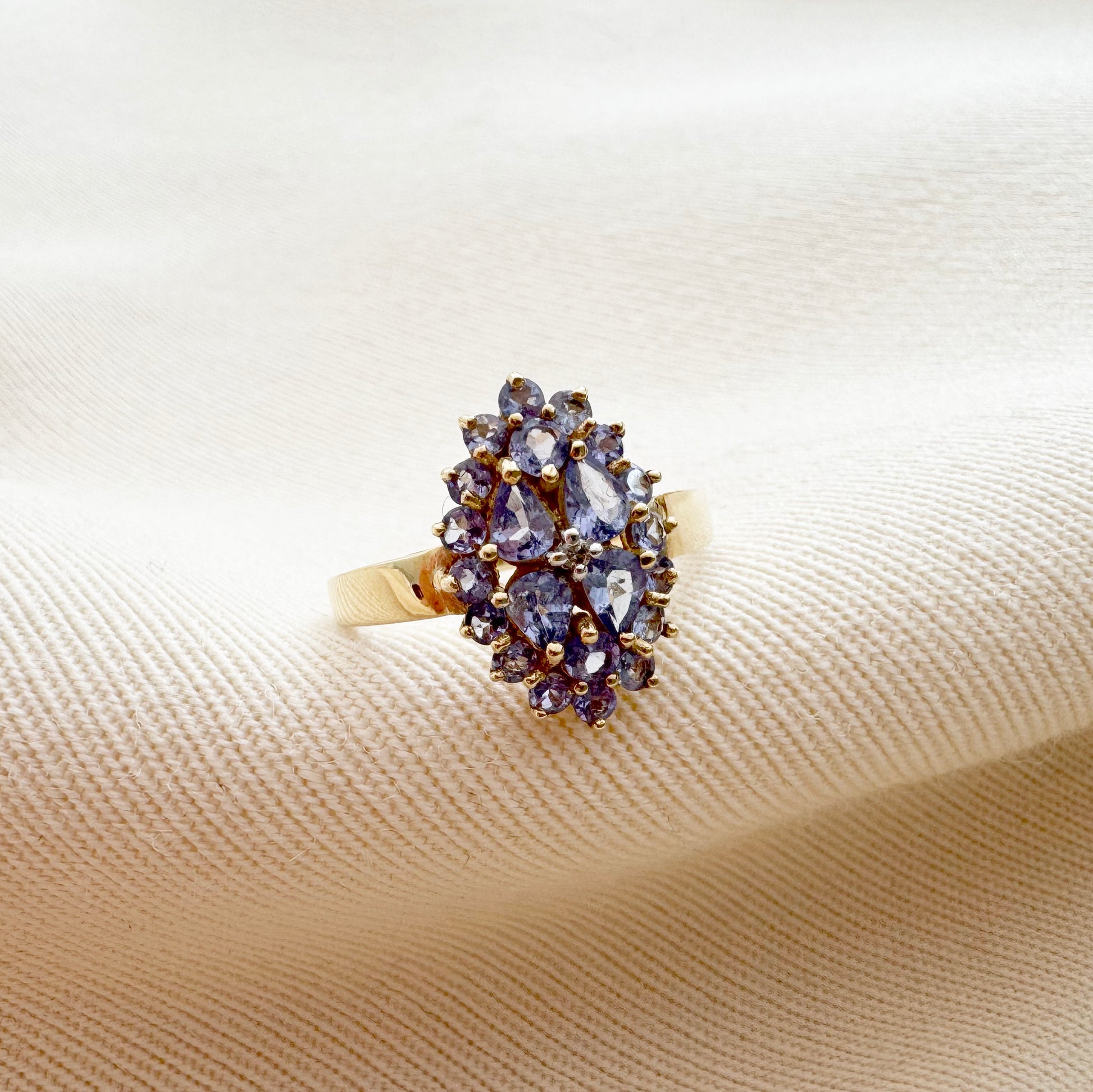 Vintage Tanzanite and Diamond Gold Ring, size 7