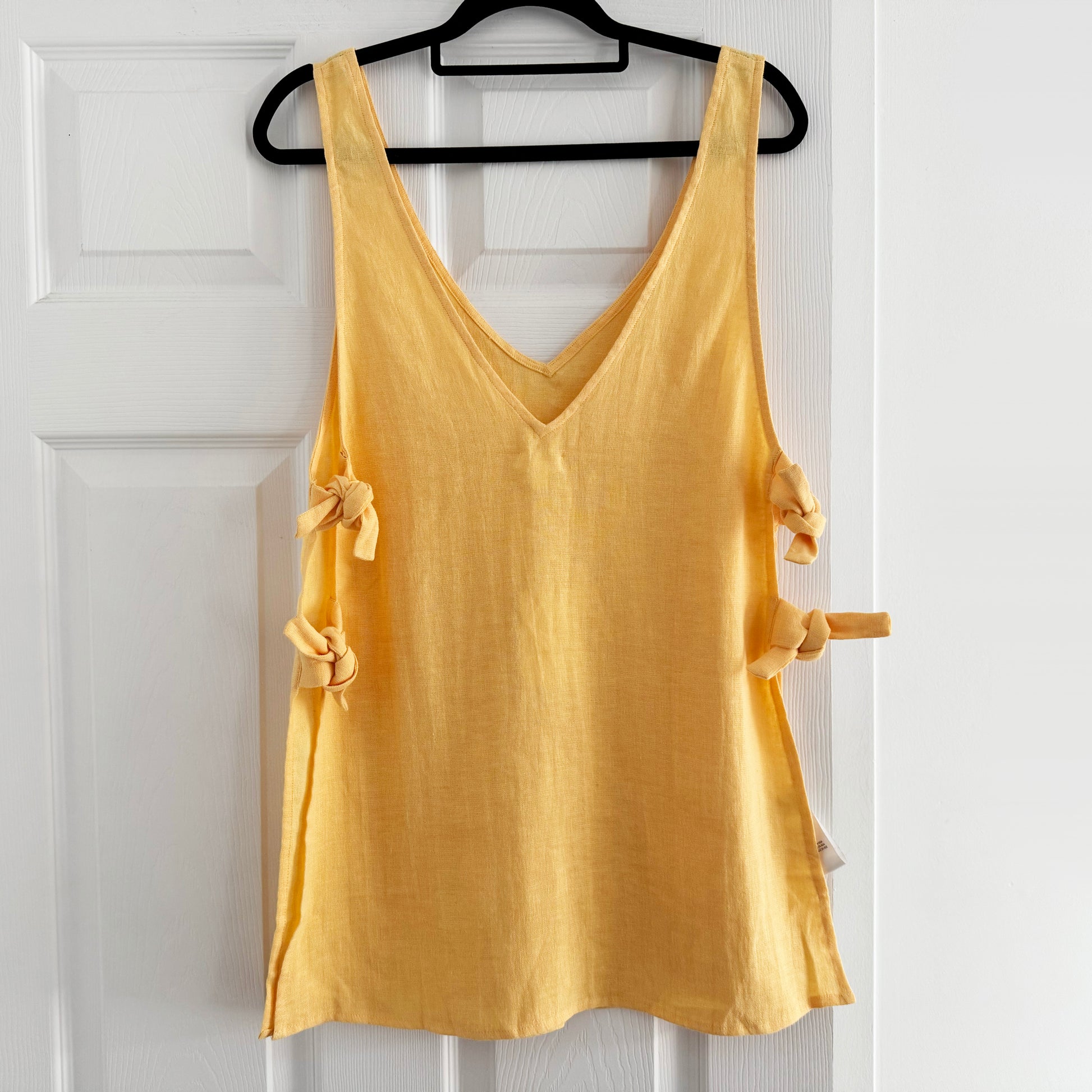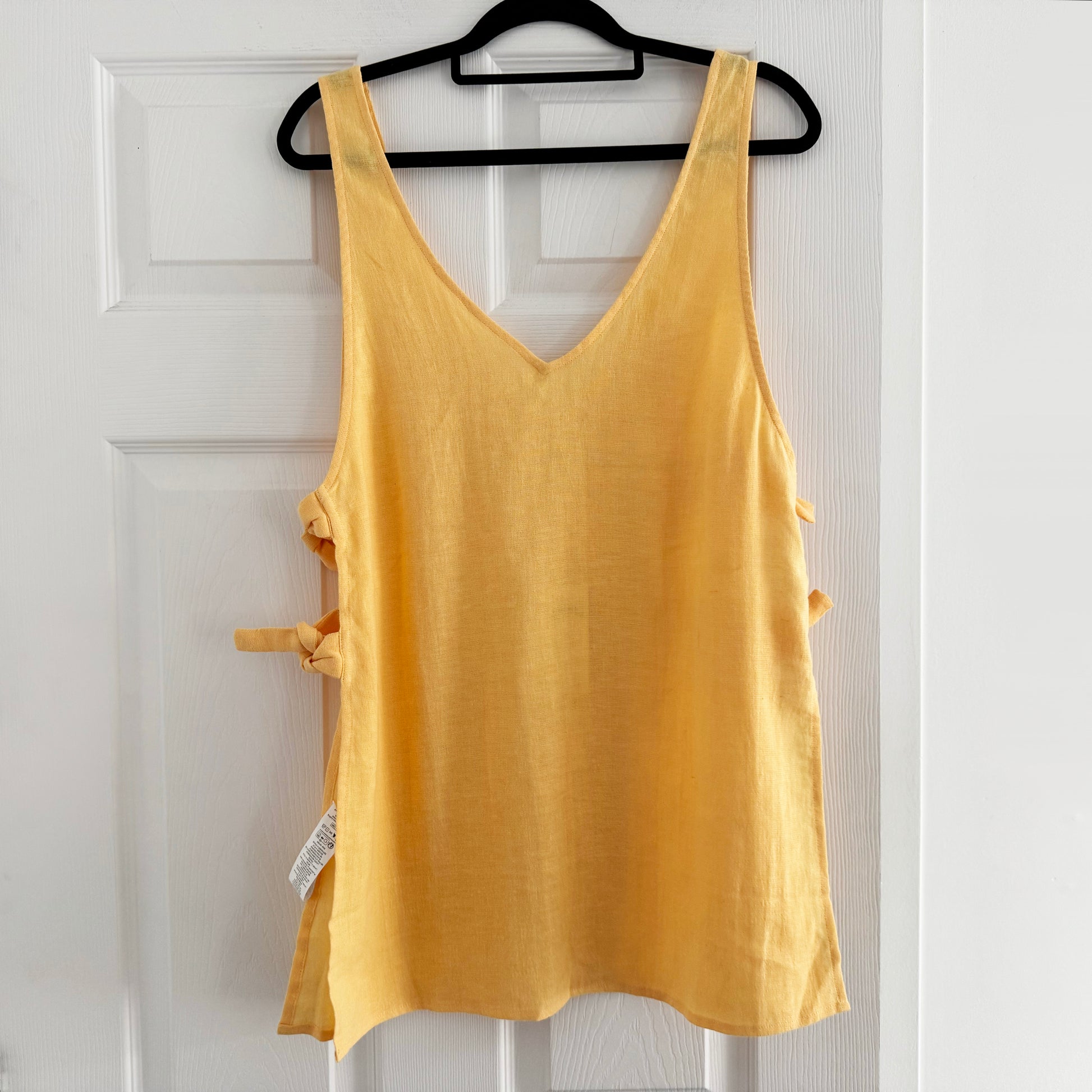 Vitamin A "Riviera" Mini Dress in Creamsicle, size Small. Fits true to size. Brand new with tags! Such a chic cover up for swim!! Part of the brand's current collection online if you love it but want another size! 21.5 inches in length. 100% linen. Currently selling for $170CAD on the brand's site, and selling here for $95CAD!