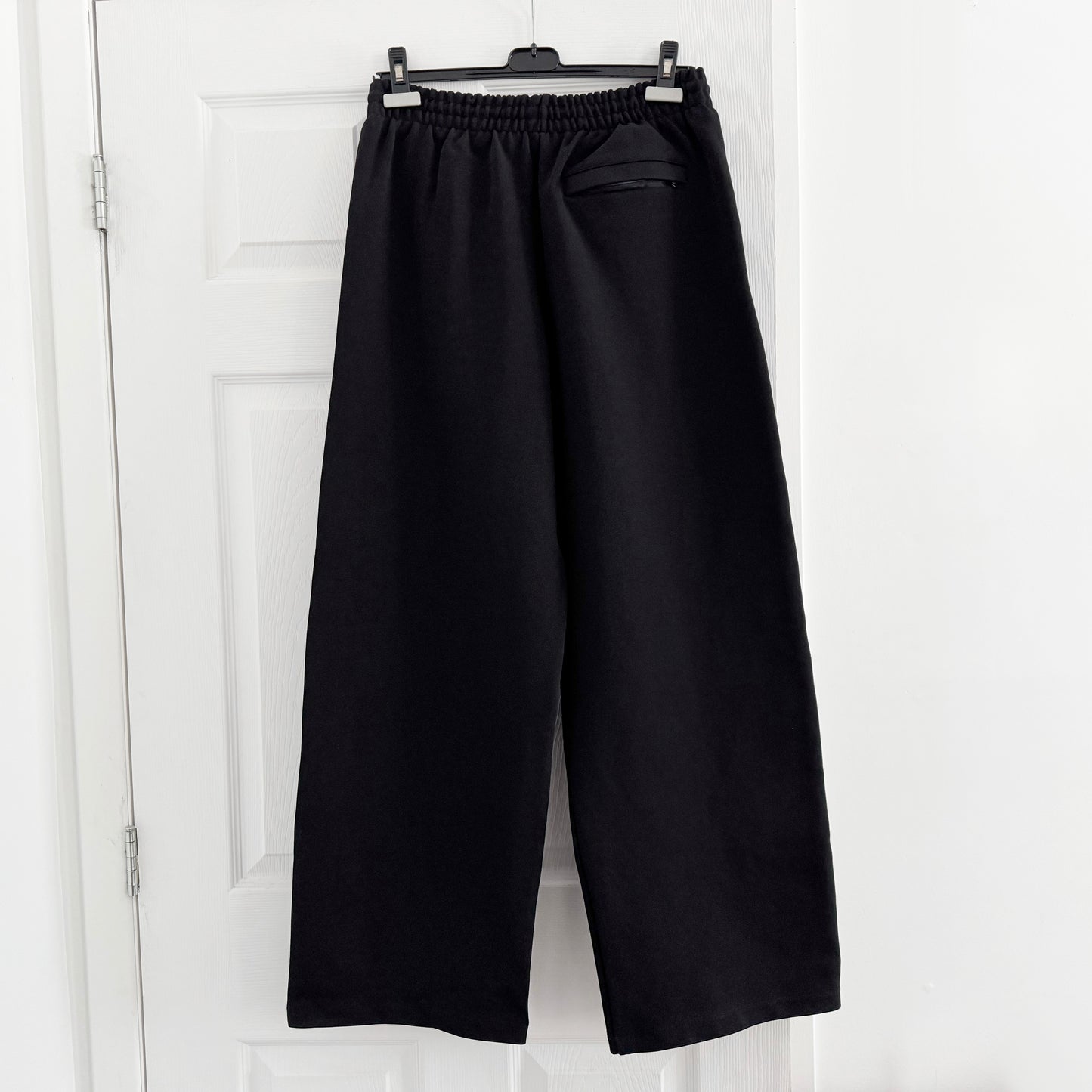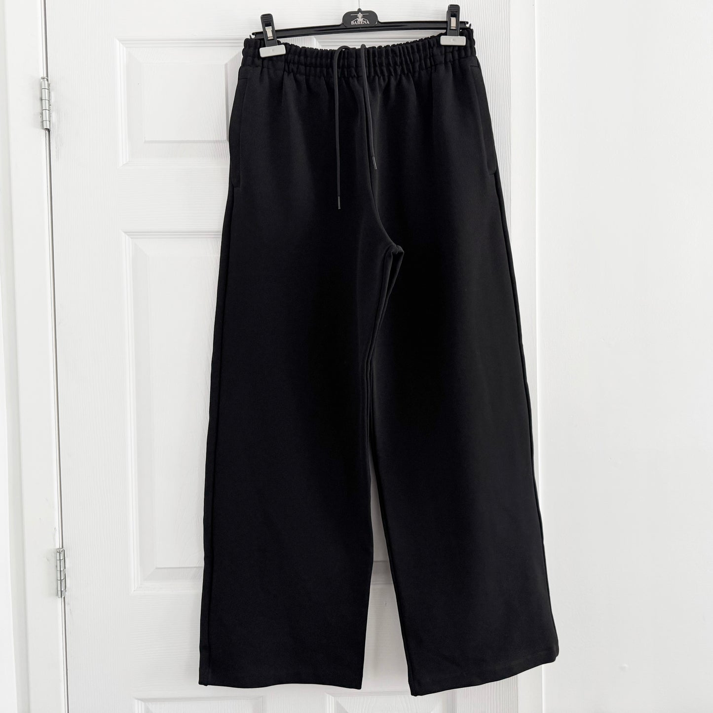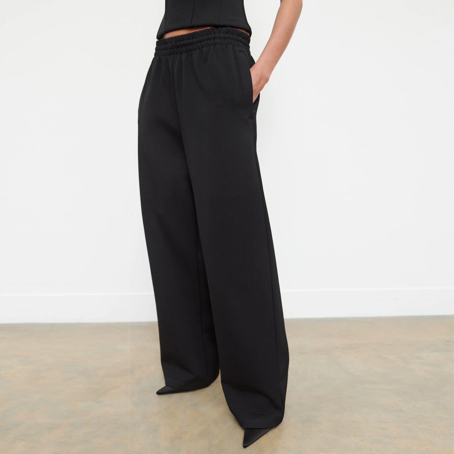 Wardrobe NYC Semi-Matt Track Pants in Black, size Small. Fits true to size for a roomy fit. These are a very cool and very unusual pant (not your usual track fabric - they're a thick almost scuba-like knit fabric)!! A track pant that could easily be dressed up or down - the fabric makes them quite versatile! Great for transitional and cooler temps, since they're thicker. Pair with anything from sneakers to heels - depending on your vibe! 14 inch rise. 42 inches total length. 29.5 inch inseam. Waistband is 30 inches unstretched, and stretches comfortably to 36 inches. 60% Viscose, 30% Polyamide, 10% Elastane. Like new. Retails for anywhere between $850 and $1390CAD (depending on where you shop), and selling here for $295CAD!