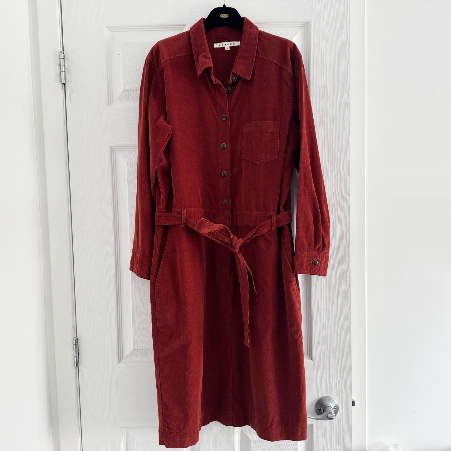 Xirena "Cameron" Corduroy Dress in Rust, size Medium. Fits true to size. Such a cute little Fall dress - a perfect casual transitional wear piece. Corduroy is ESSENTIAL Fall vibes for me. Pair with anything from sandals to a western boot - as the temps of the day dictate! 20 inches armpit to armpit. 41.5 inches in length. 100% cotton. In excellent condition. Originally over $300CAD, and selling here for $125CAD!