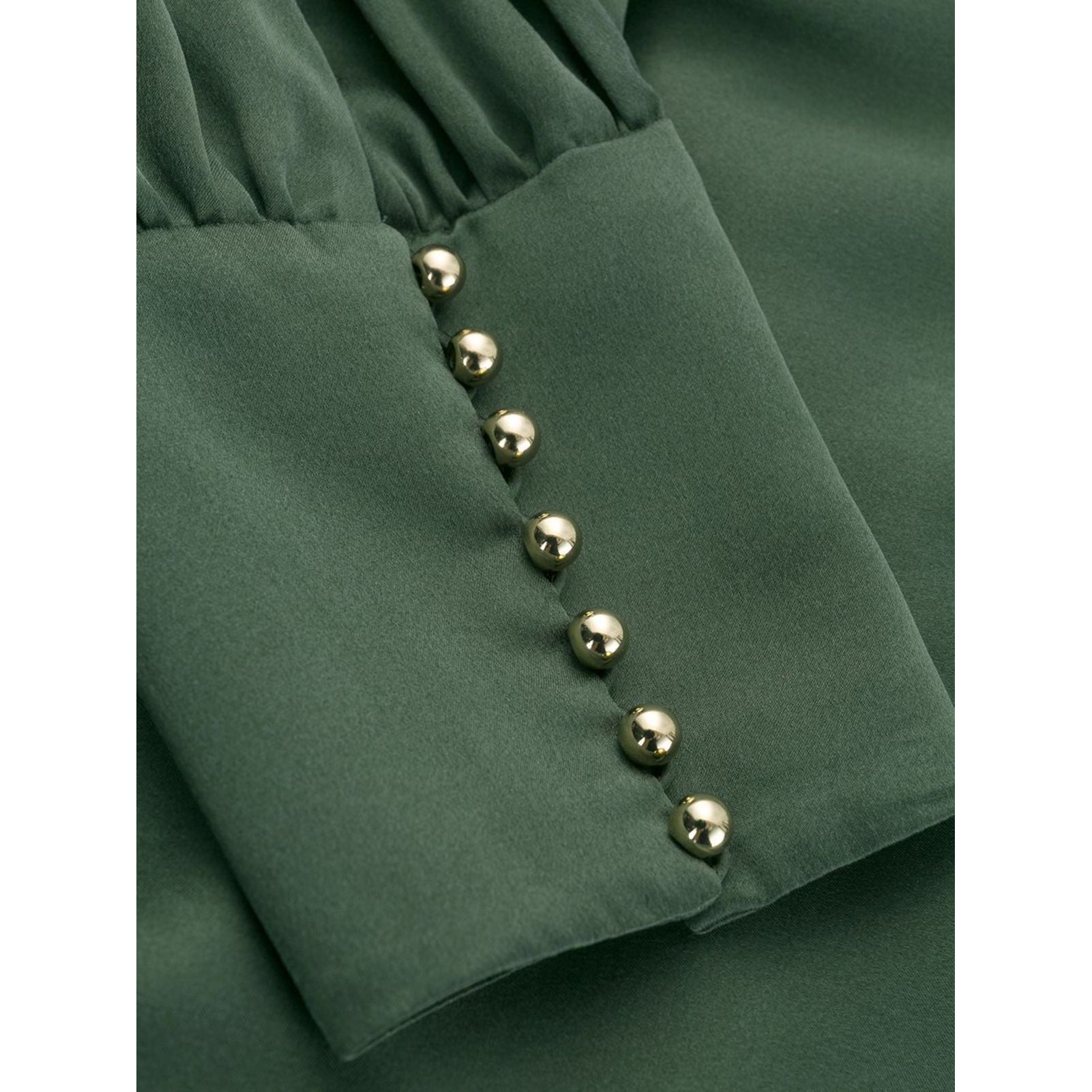 Zimmermann "Espionage" Tiered Satin Dress in Green, size "1" (which is like a size small). SUCH a stunning dress!! The way the ruffles move when you walk or dance is incredible!! Long sleeve dresses that still feel quite fancy are harder to find than they should be - they can be so nice when you're feeling in a more covered up mood. It has a little tiny rolled silk tie belt, and a removable tie for the neck (attached with a button at the back of the neck). 19.5 inches armpit to armpit. Between 46 and 52 inches in length. 100% silk. Worn maybe once and in excellent condition. Originally around $1000CAD, and selling here for $335CAD!